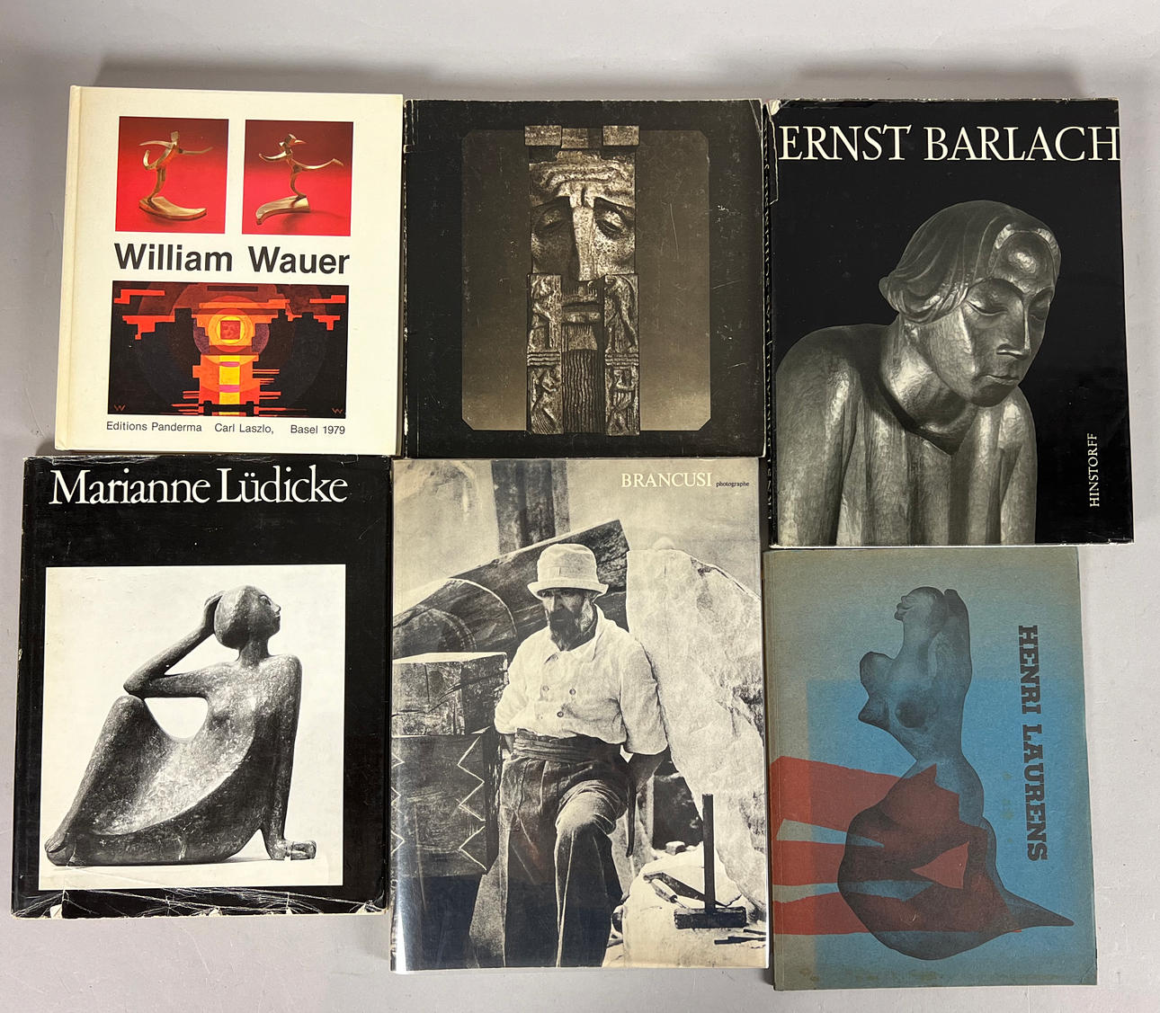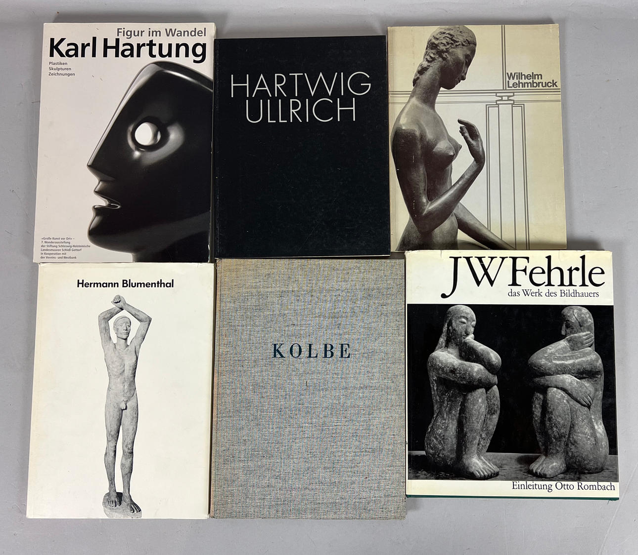 Dabei Fritz Fleer, Franz Metzner, William Wauer, Gustav Weidanz, Hans Martin Ruwoldt, Gerhard Marcks das plastische Werk - Werkverzeichnis, Karl Hartung, Hermann Blumenthal, Georg Kolbe, Wilhelm Lembruck, Otto Flath, Ewald Mataré das plastische Werk - Werkverzeichnis, Ludwig Gies, Bernard Hoetger, Edgar Augustin und viele mehr. 64 Bände und zahlreiche kleine Ausstellungskataloge.