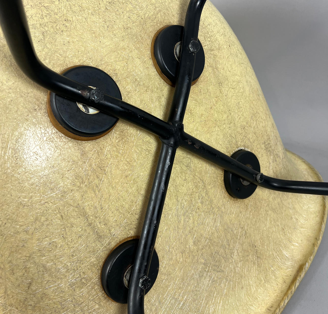 Gestell Aluminium lackiert. Schale in gelben Fiberglas.