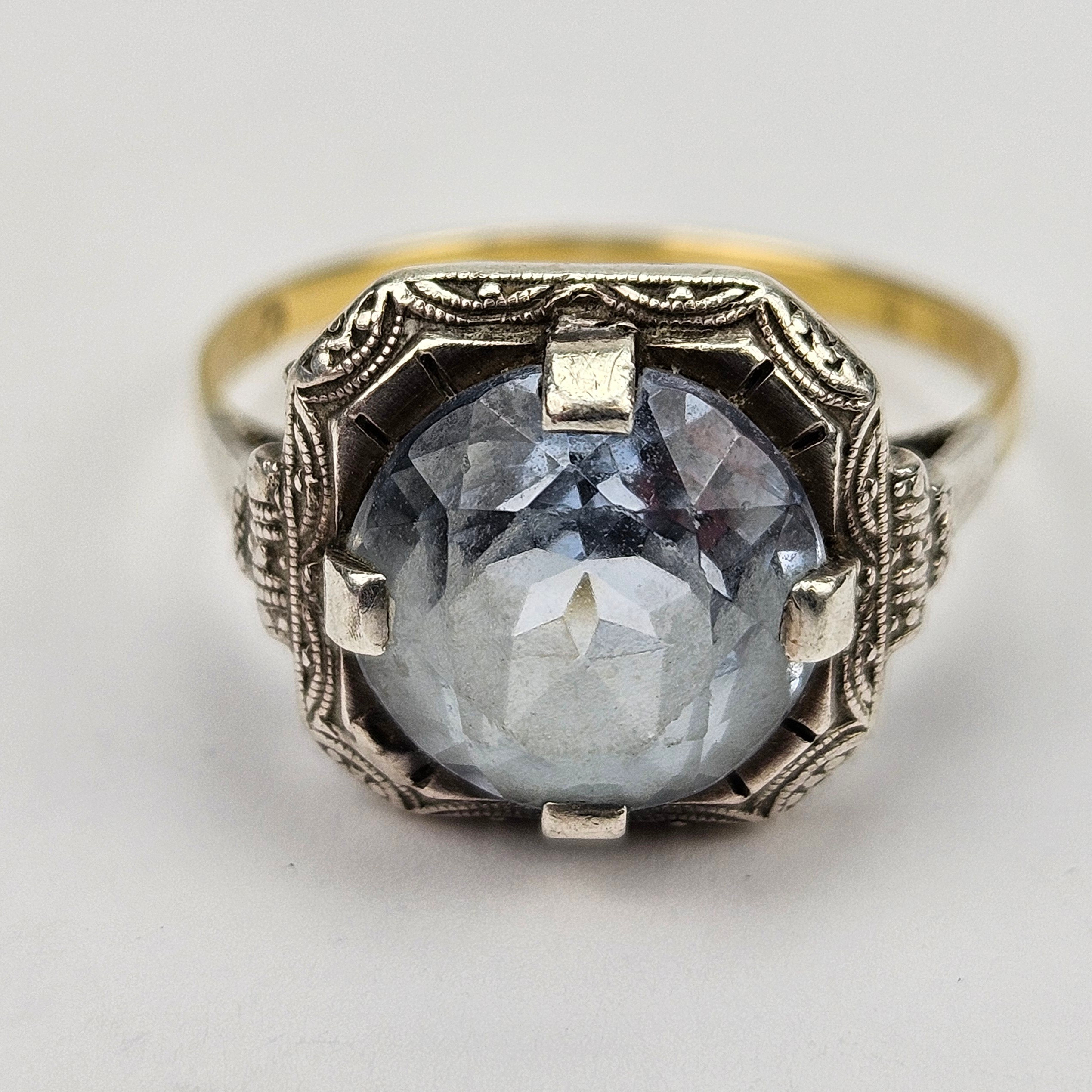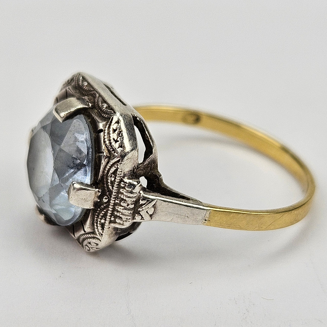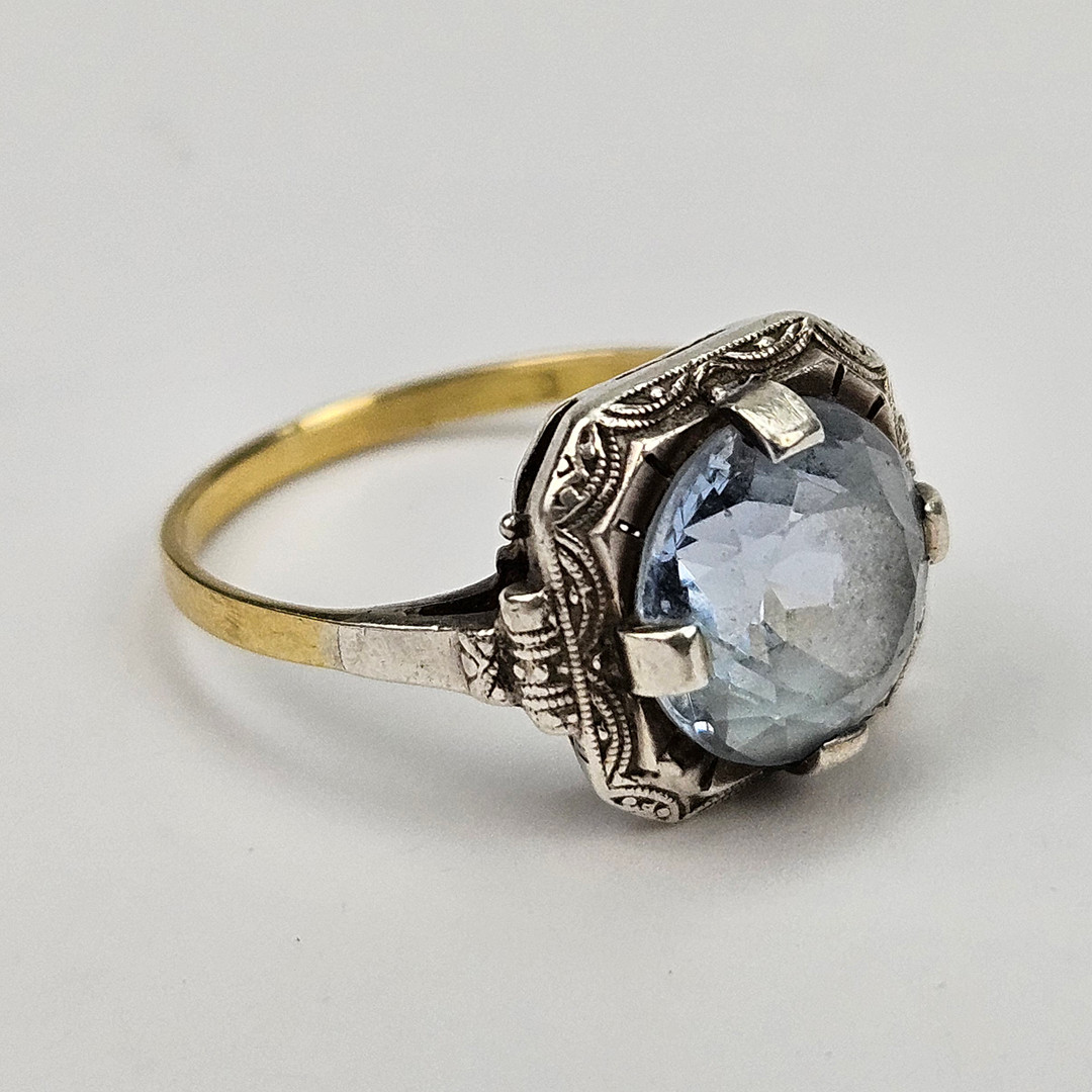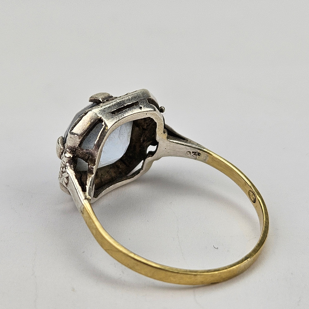 3666400. RING mit hellblauem Stein, Silber und Gold, 18 Karat.
