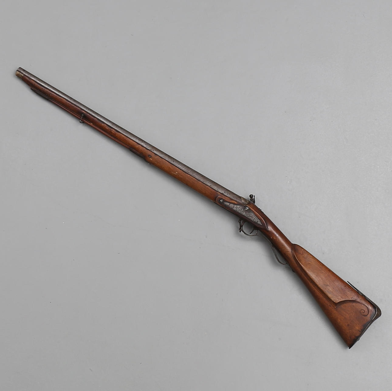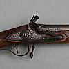Steinschlossbüchse mit Vollschaft und glattem Lauf, das Schloss gemarkt „Norrköping“, Sammlungsnummer mit weißen Nummern auf dem Schaft „189“, Länge 106 cm Provenienz: Sammlung Hedberg, Schloss Bjärsjölagård.