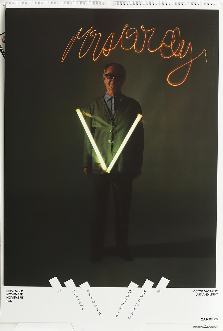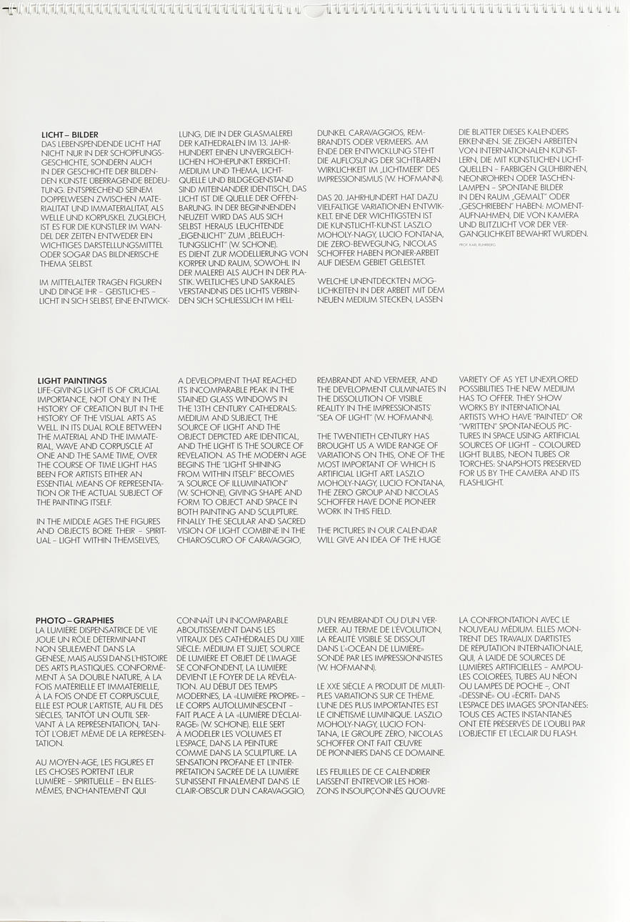 Almanach für das Jahr 1987 mit Foto von Harald Schlüter, Künstlerportrait mit Lichtmalerei unter anderem von David Hockney, Roy Lichtenstein, Max Bill und Victor Vasarely.