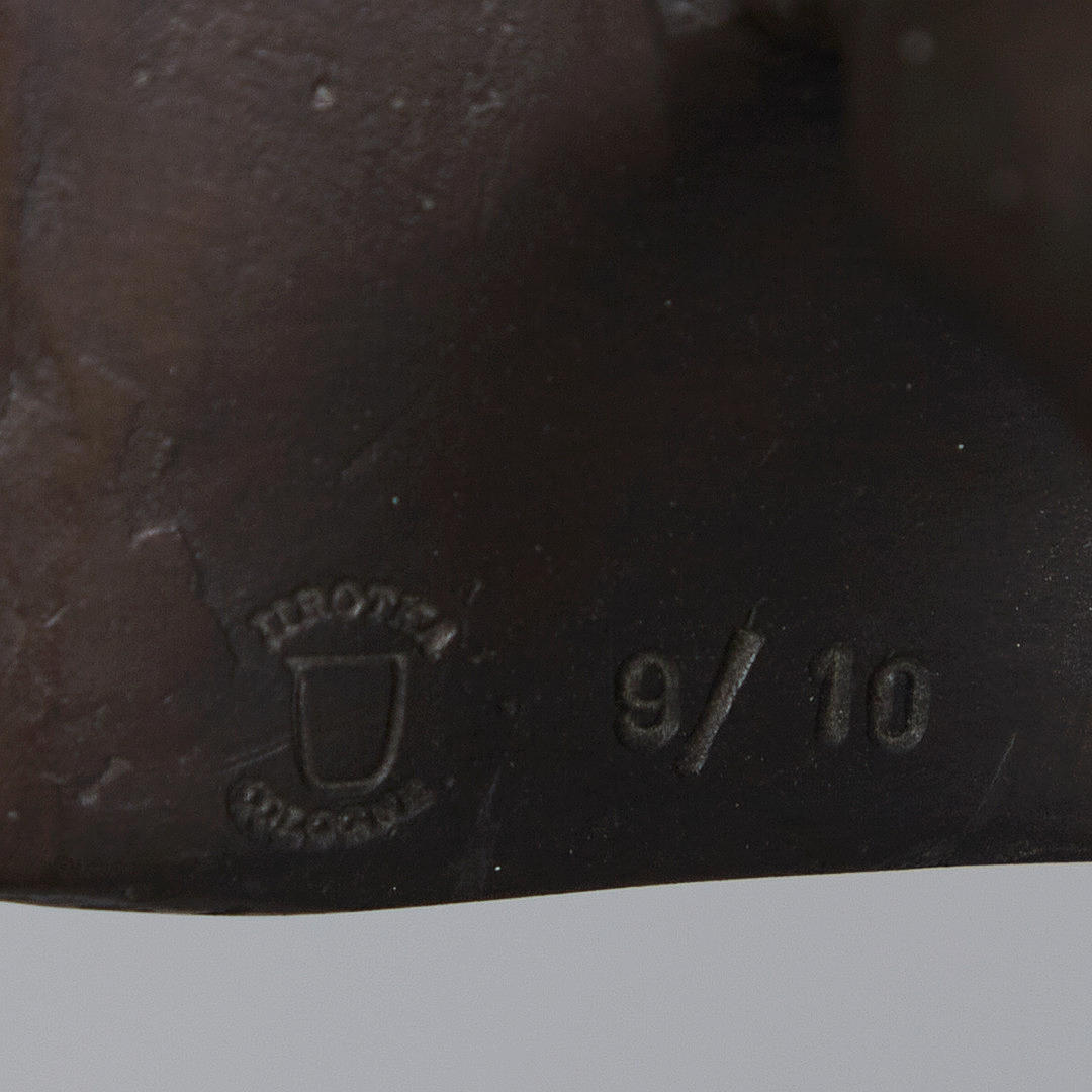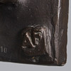 Altersgemäße Gebrauchs- und Reibespuren, minimale Risse sowie Kleberückstände an der Bronze, partielle Kratzer und Bestoßungen im Kunststoff.