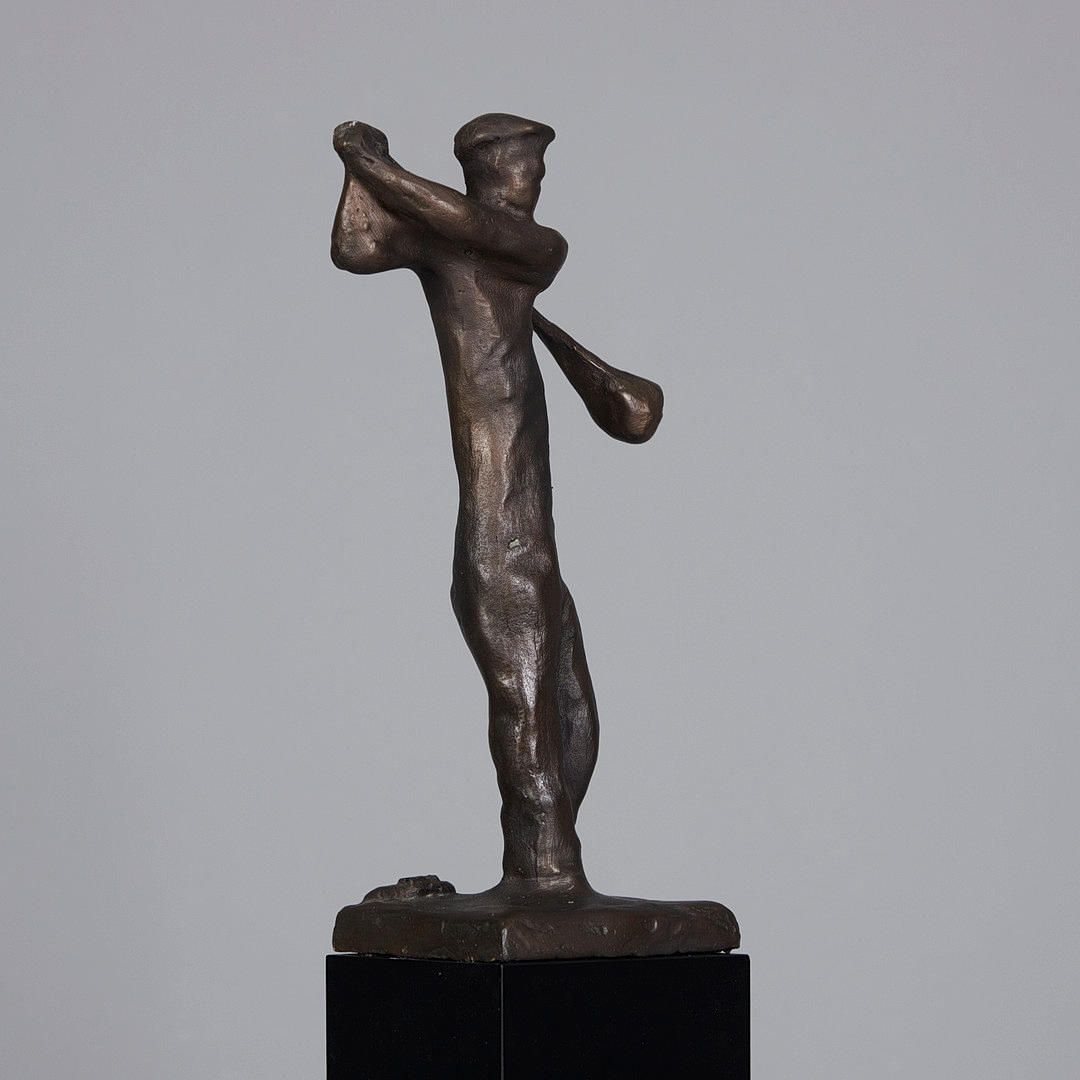 Anton Fuchs (geb. 1958), Der Golfer, Bronze, Bronze, Kunststoff, Deutschland, an der Plinthe mit Künstlermonogramm 'AF' signiert, mit Herstellungsort punziert sowie mit '9/10' nummeriert, H.23cm, B.11cm, T.8cm, mit Sockel: H.170cm, B.30cm, T.30cm.
