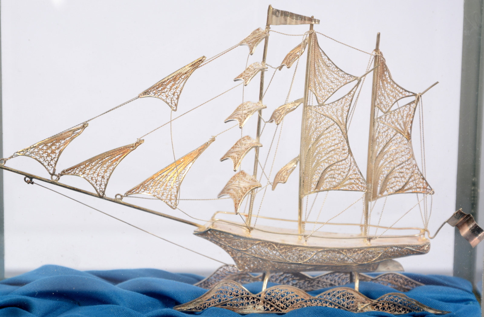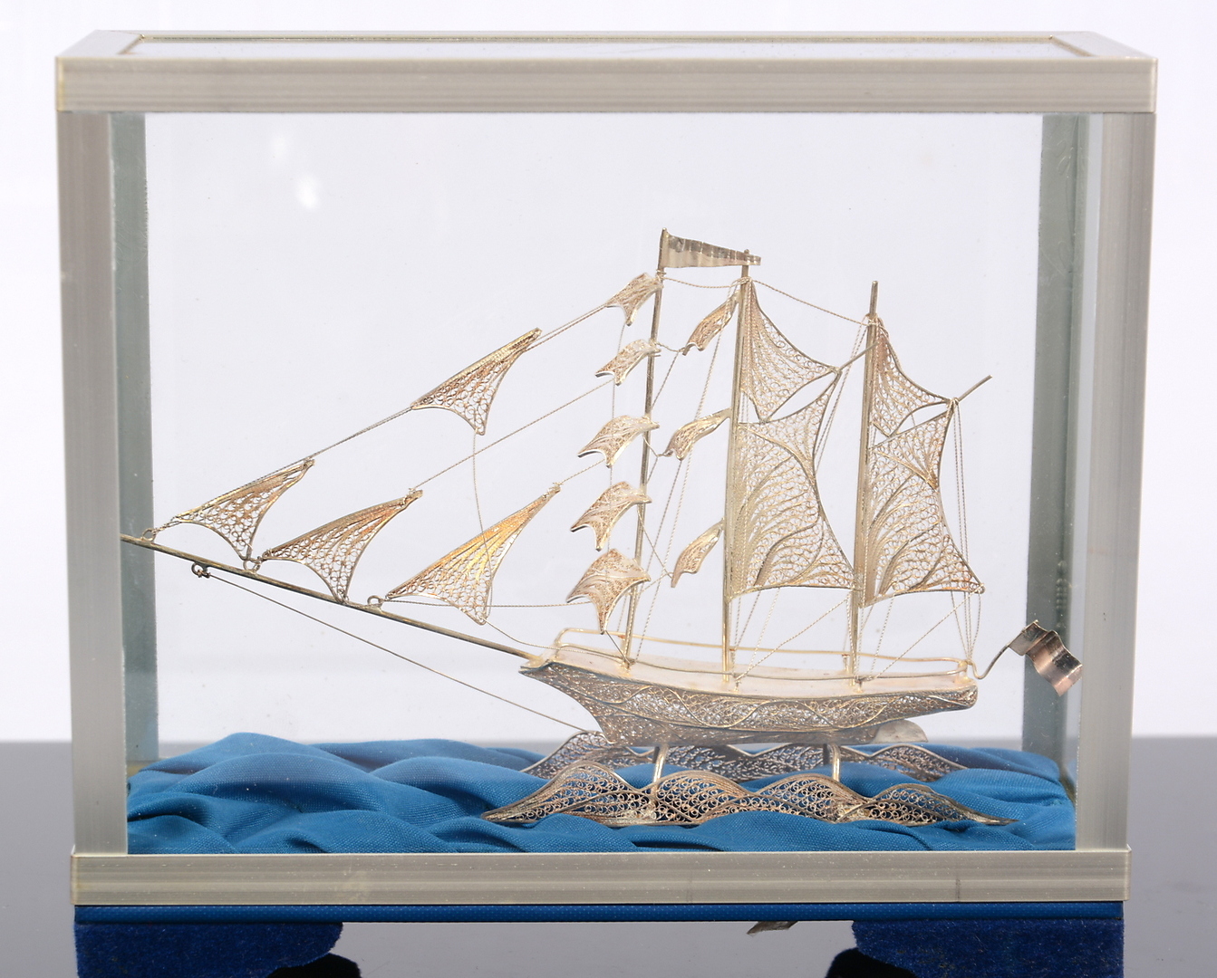 367476. SCHIFFSMODELL, Silber, zweite Hälfte des 20. Jahrhunderts.