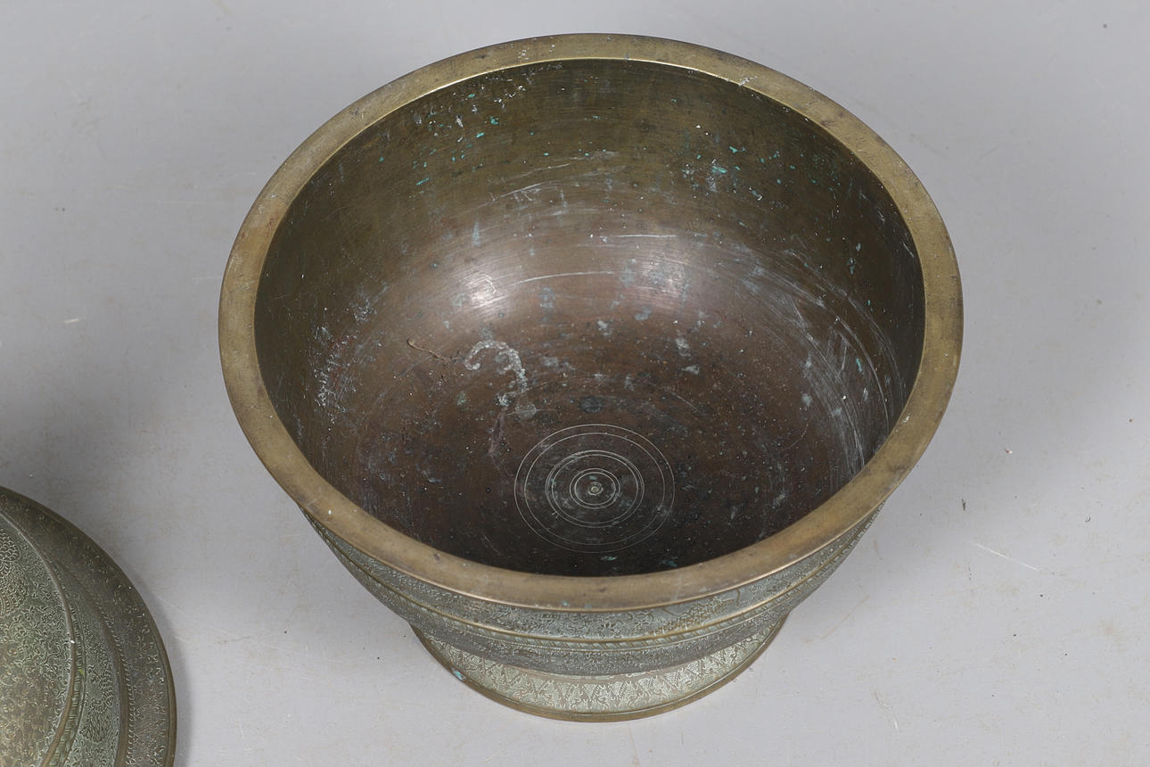 3679926. GROSSE ASIATISCHE MESSINGSCHALE MIT DECKEL.