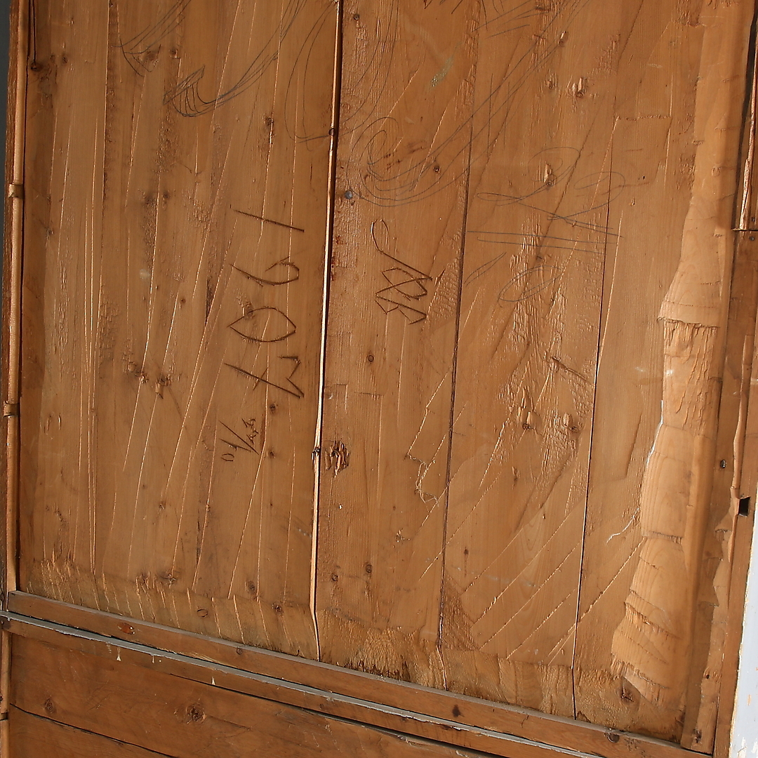 368001. HOCHSCHRANK, bemalter Pelz, einfacher Mann, 19. Jahrhundert.