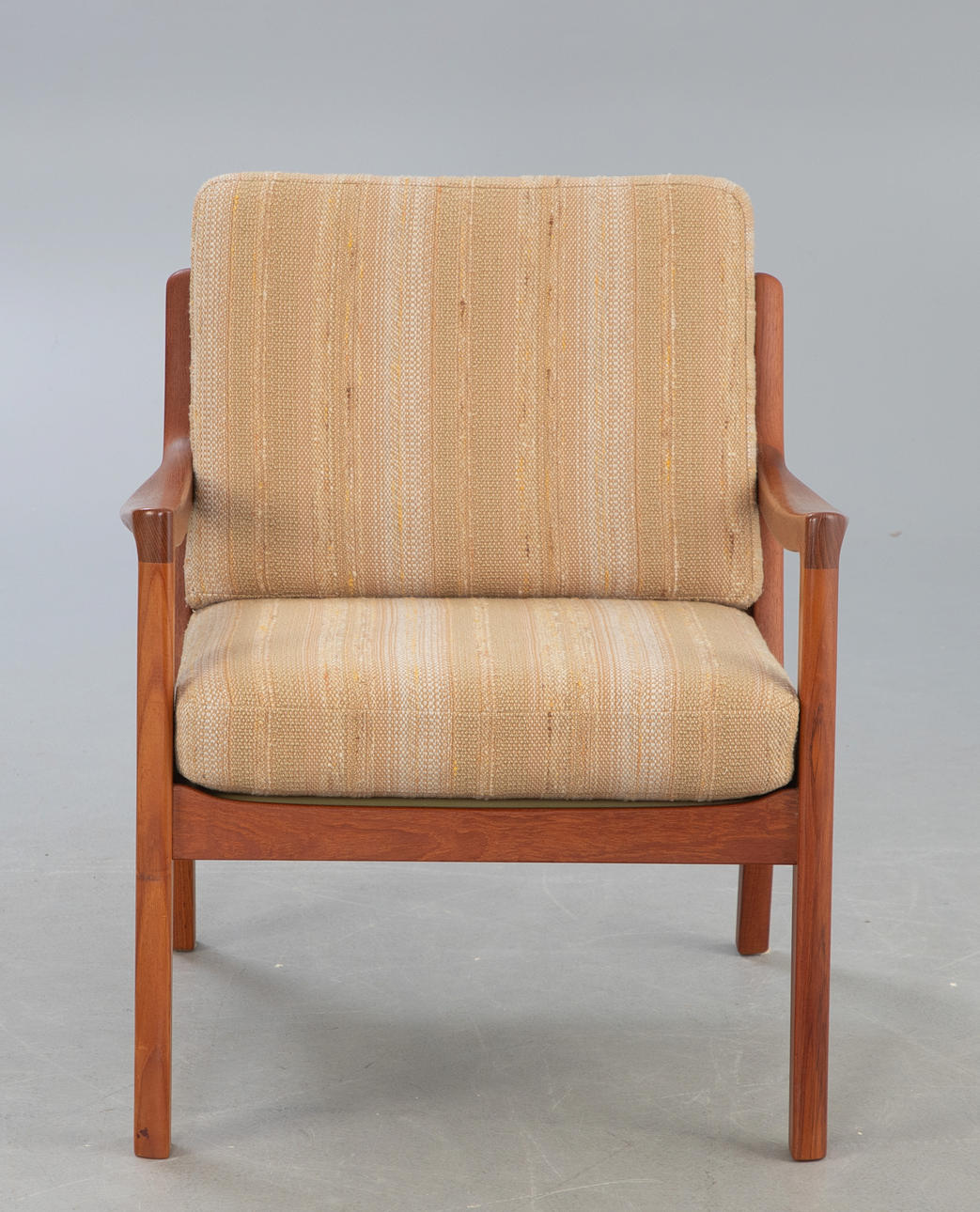 Entwurf: 1951. Gestell aus Teakholz. Lose aufliegende Polsterkissen, bezogen mit Wollstoff.