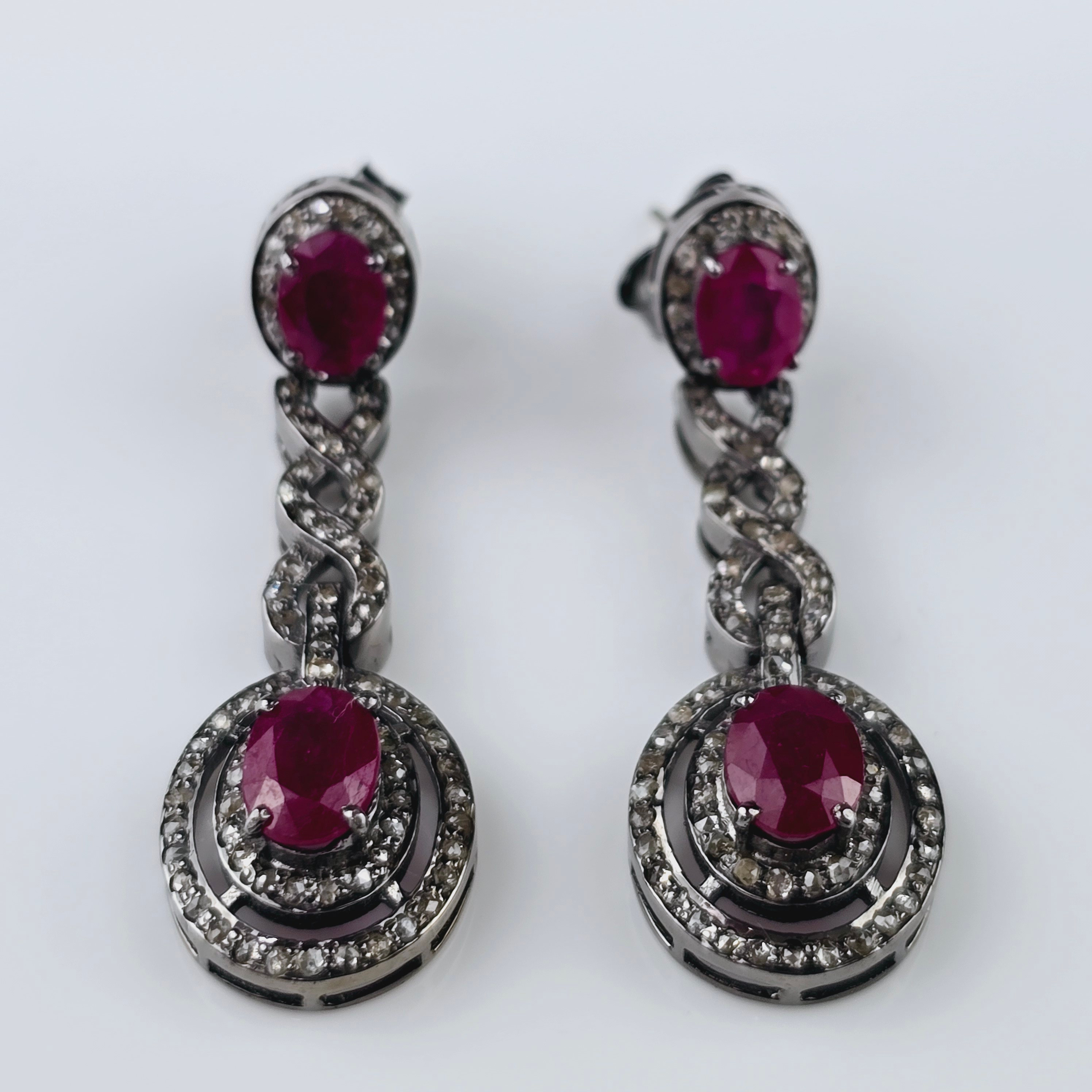 3686940. Ruby Earrings, 925 Silver with Diamond Accents.