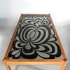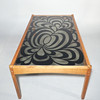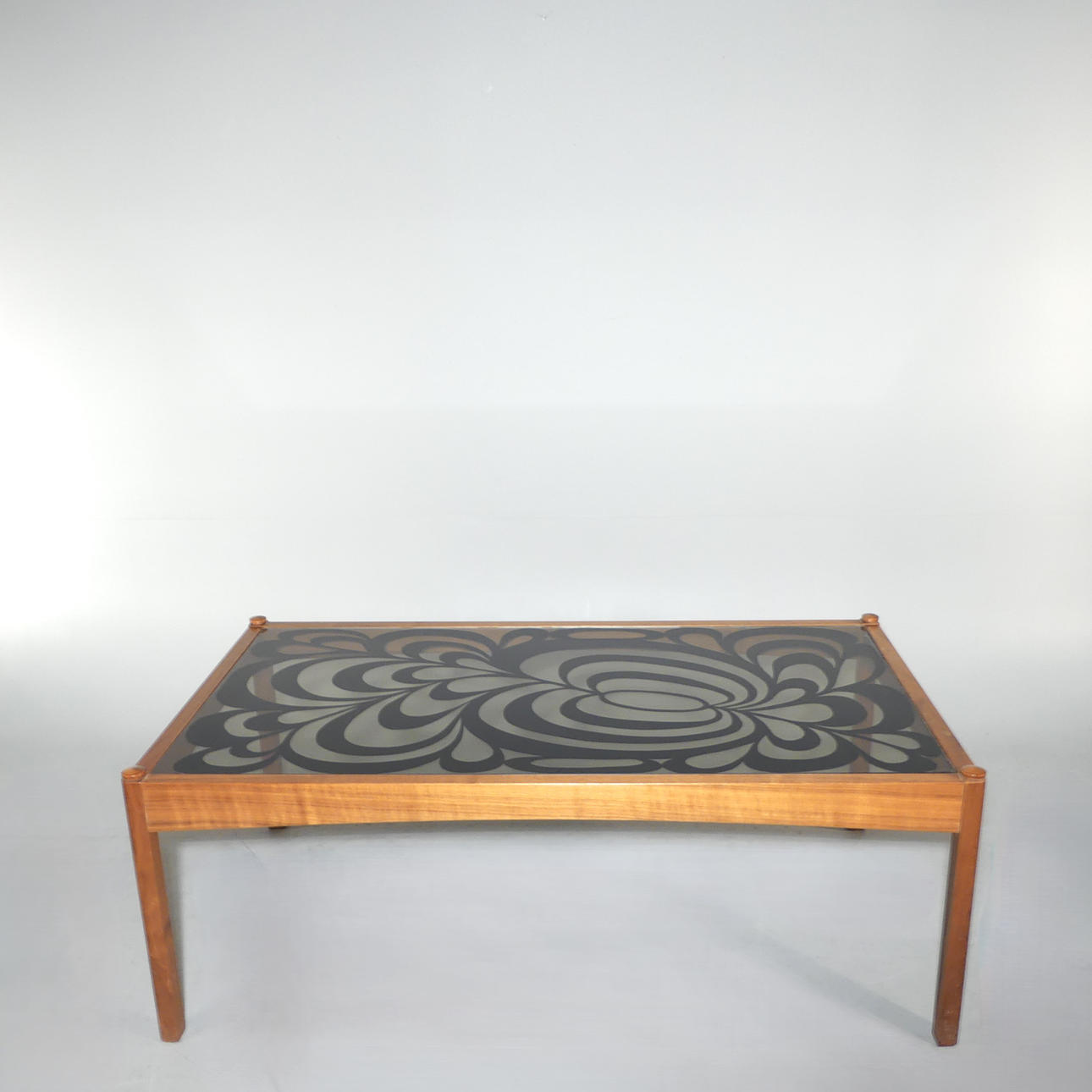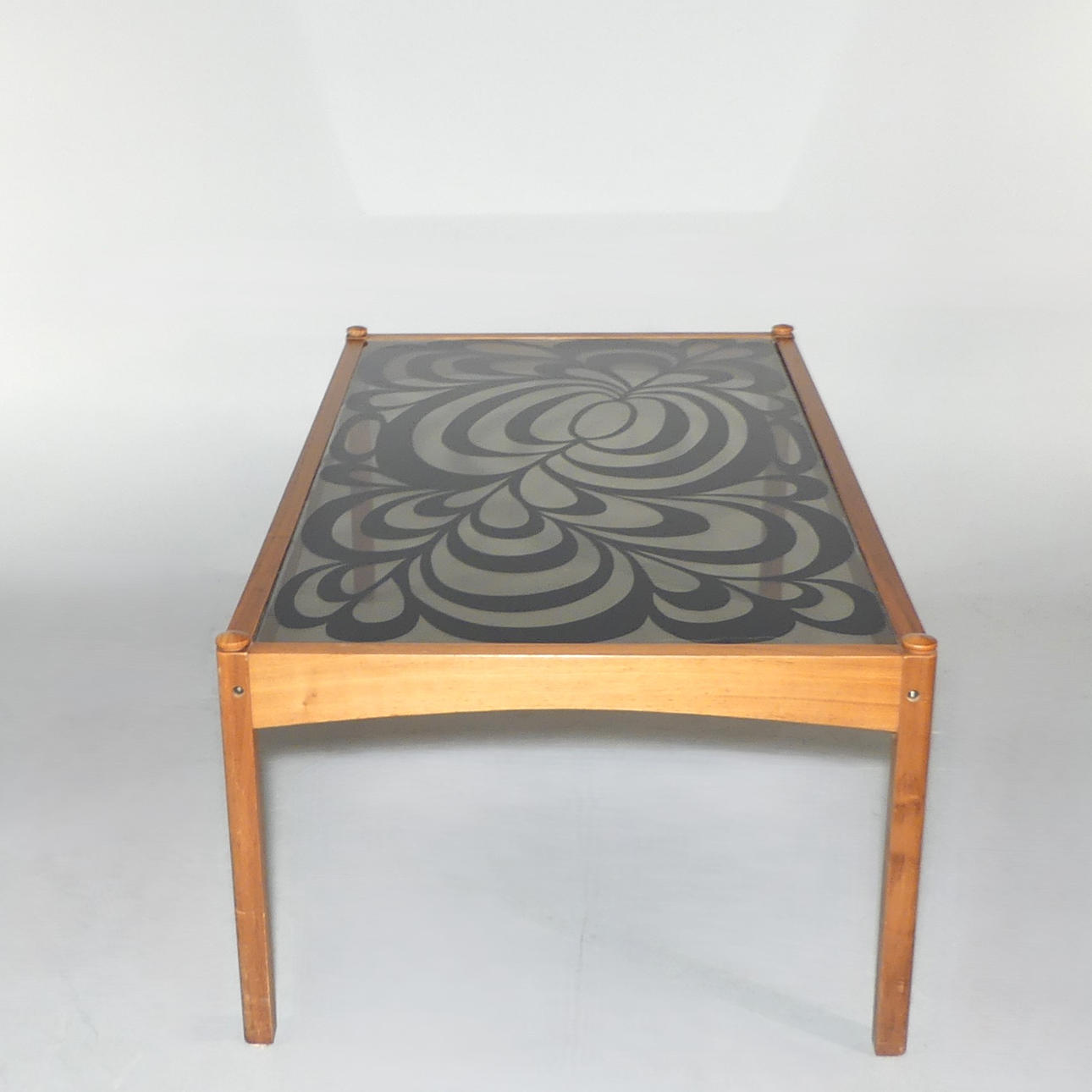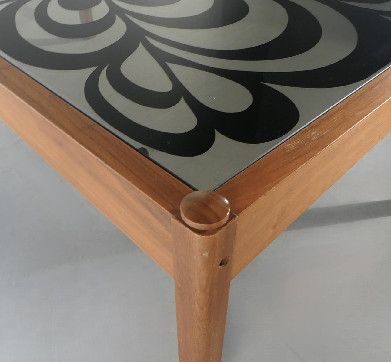 Der Gesamteindruck ist gut, Glasplatte mit ein paar kleinen Kratzern, Holzrahmen mit weniger Flecken und Scheuerstellen.