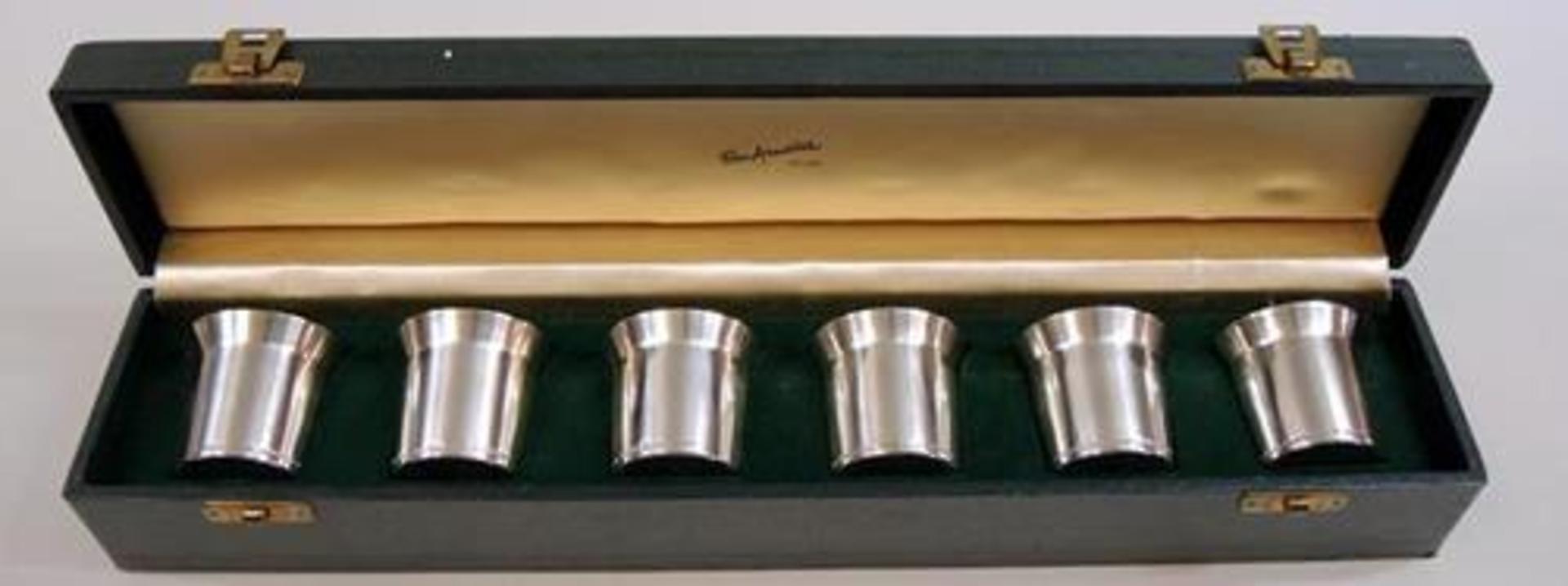 369209. 6 SCHNAPSBECHER, im Etui, Schweden.