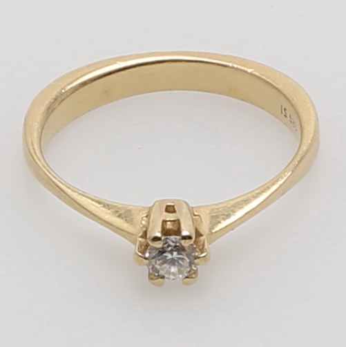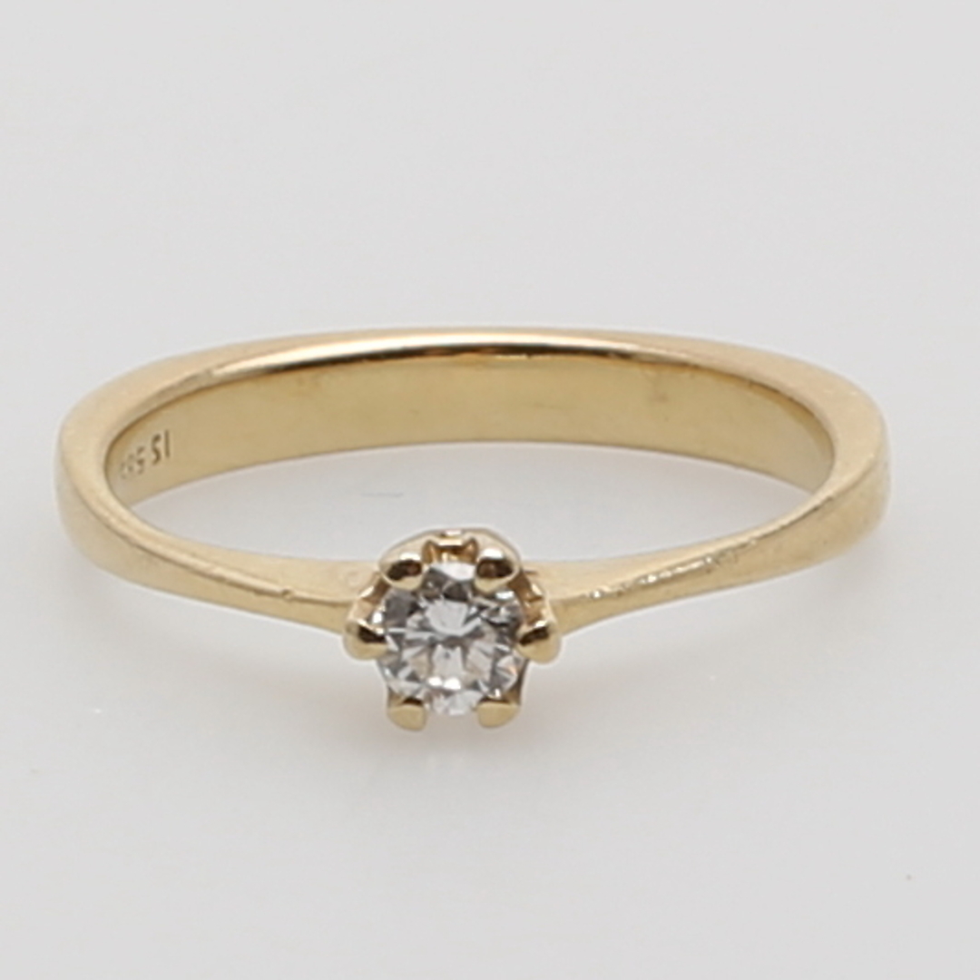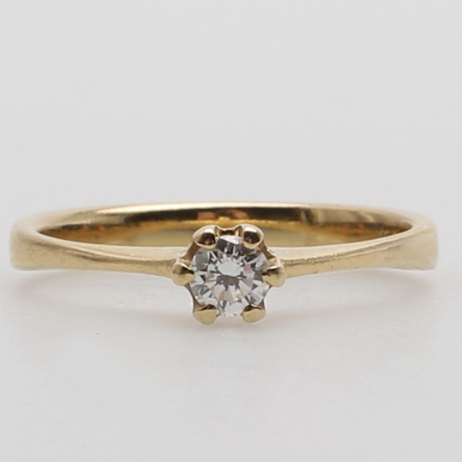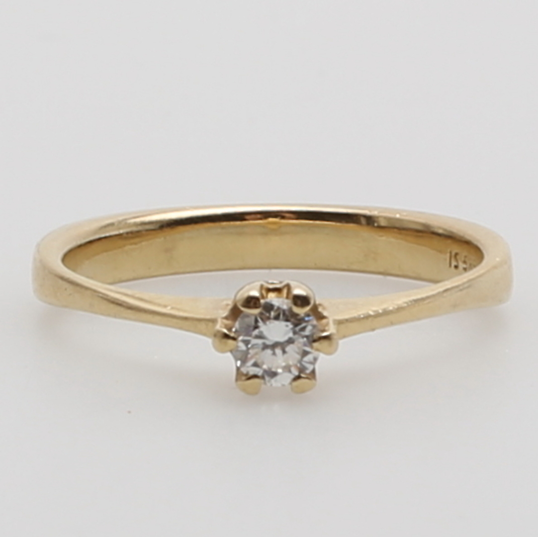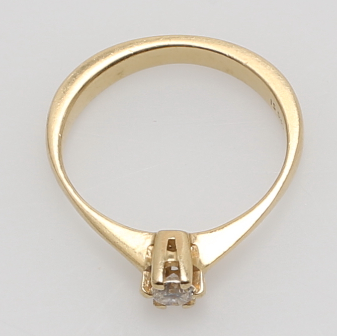 369259. RING MIT EINEM STEIN, Gelbgold 14 Karat, Diamant 0,2 ct.
