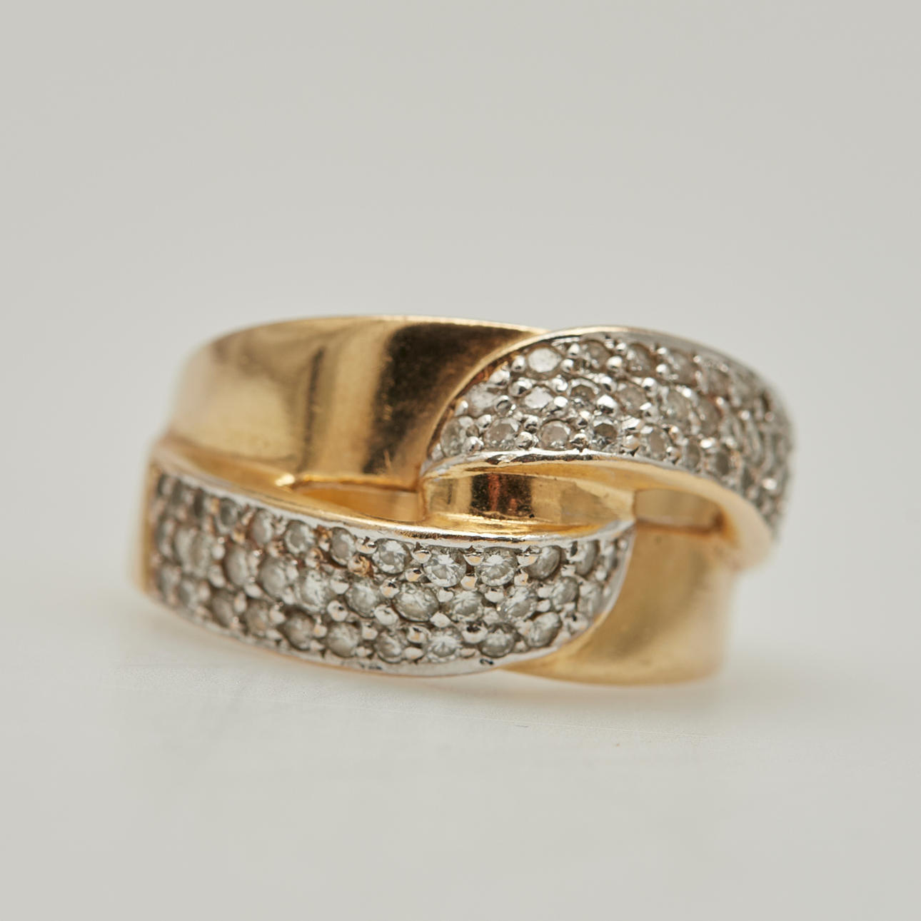 Ring gefertigt aus 585er Gelbgold, besetzt mit Diamanten total ca. 0.35ct. Farbe: Wesselton (H), Reinheit: SI-P, Ringgröße: 59, Breite: 13mm, gestempelt, Legierung geprüft, Gewicht: 9,48g.