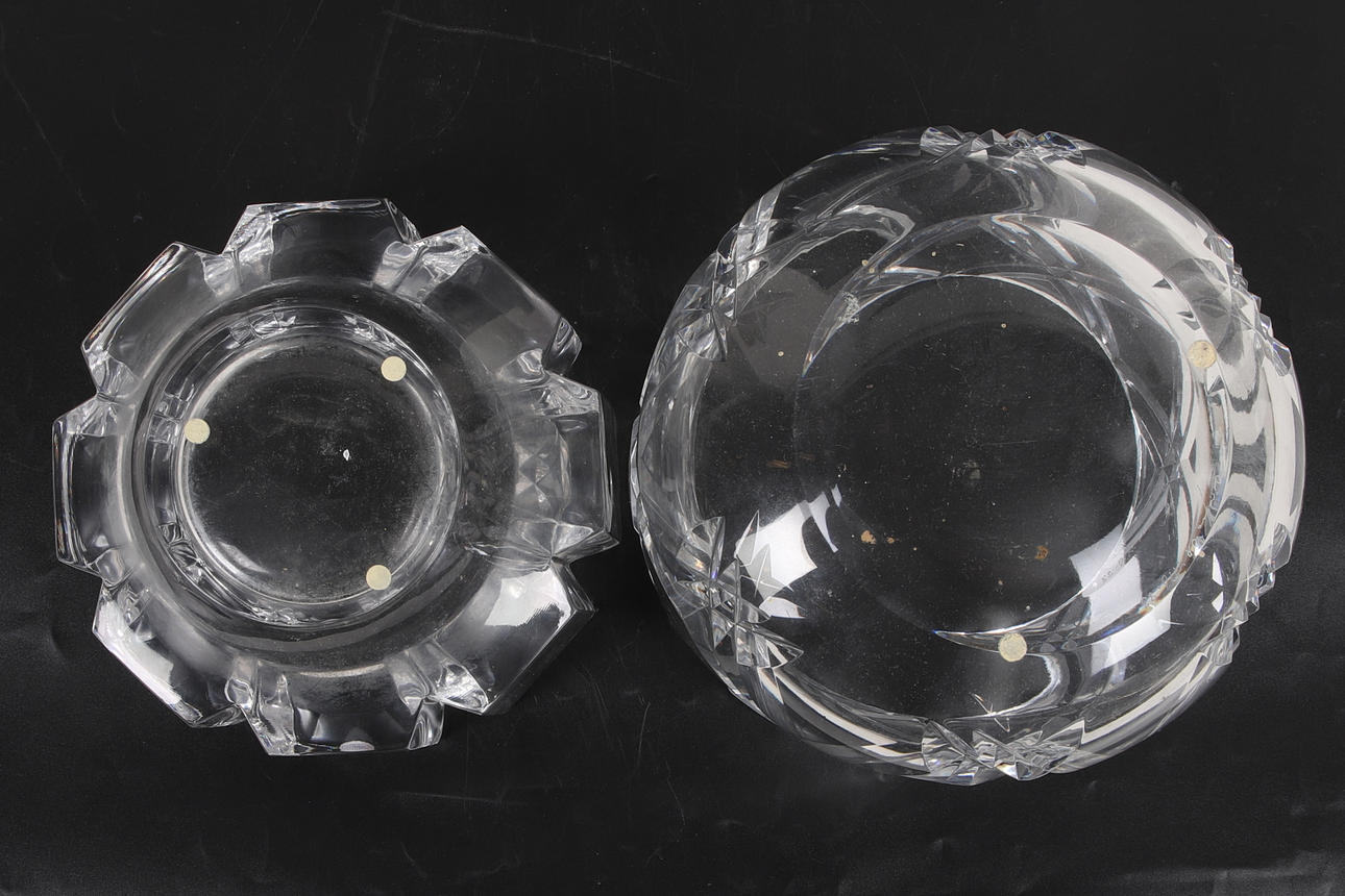 3694889. Zwei Glasschalen, Orrefors, Olle Arbelius & Lars Hellsten, 20. Jahrhundert.