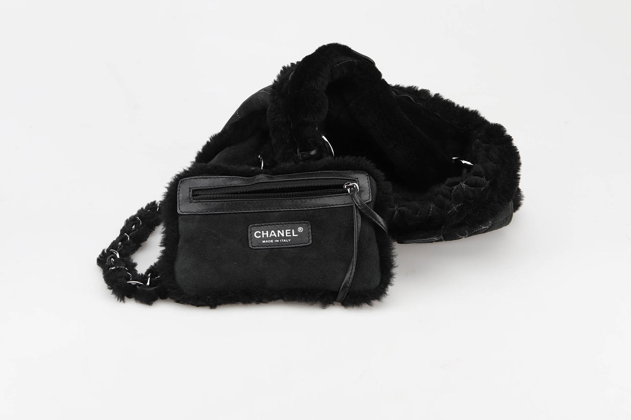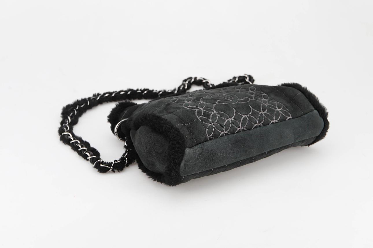3695561. CHANEL Schultertasche, gestepptes Veloursleder/Teddy mit Innentasche.