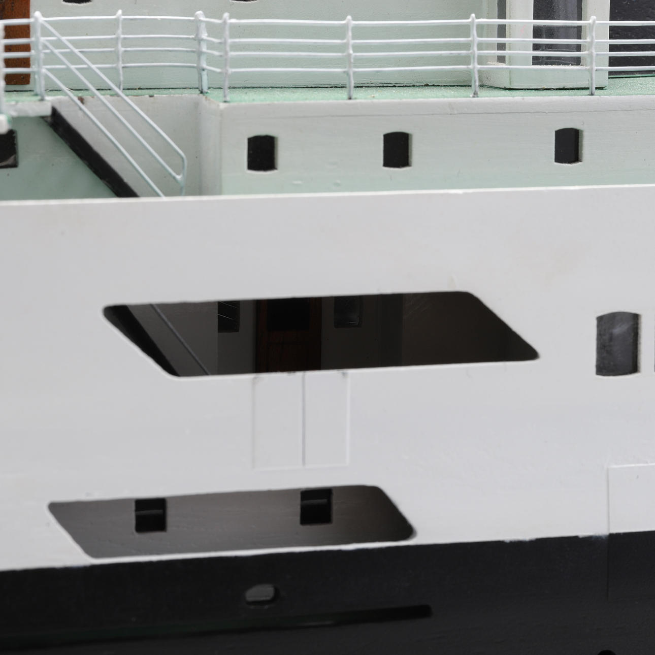 Steht für Rettungsboote debrung. Einige Teile, darunter drei Rettungsboote, fehlen.