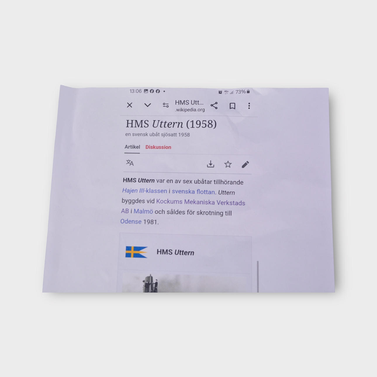 SITZBAND FÜR U-BOOT, Uttern, Schweden.