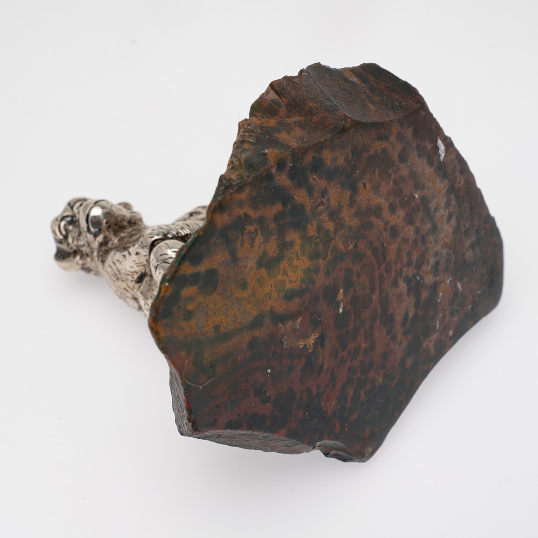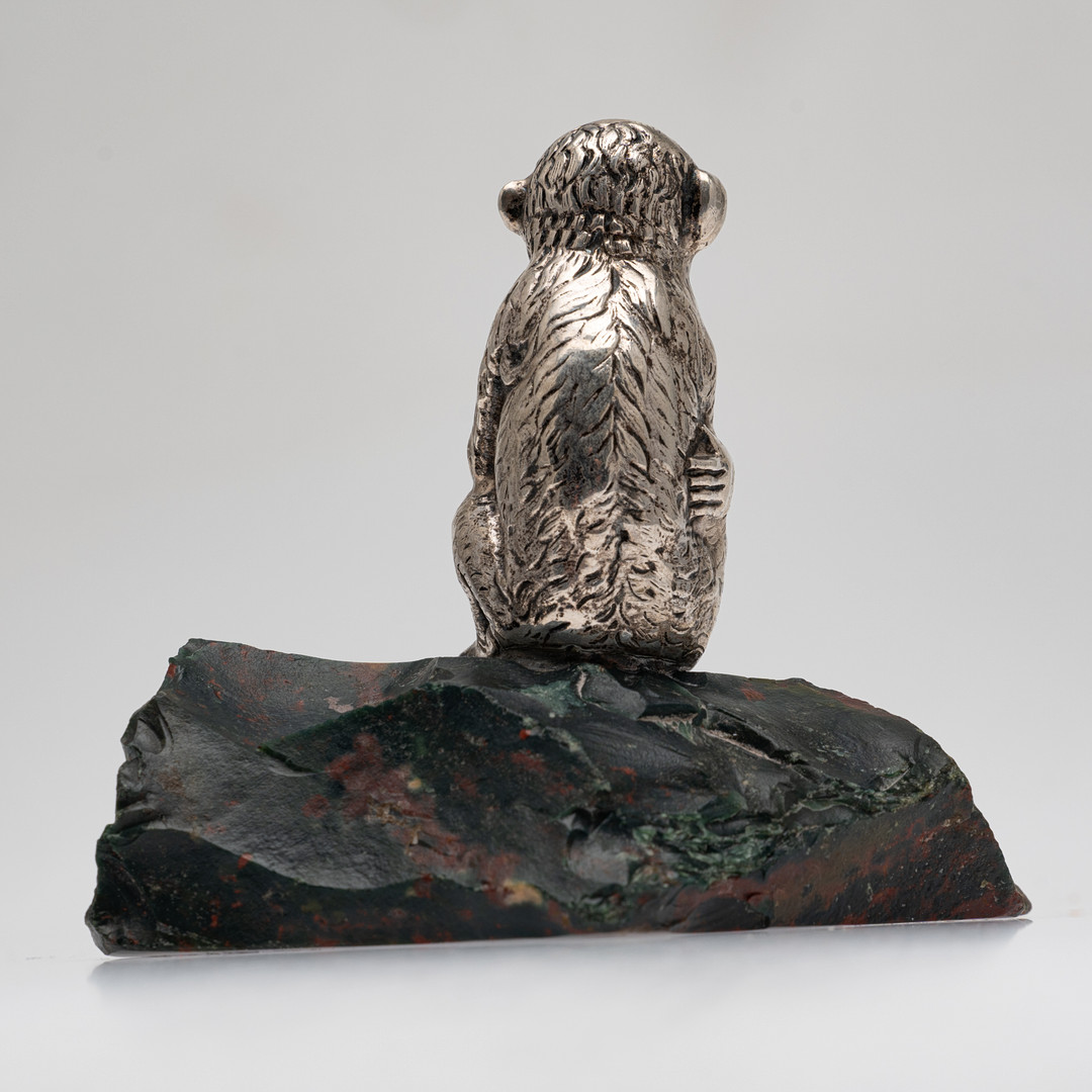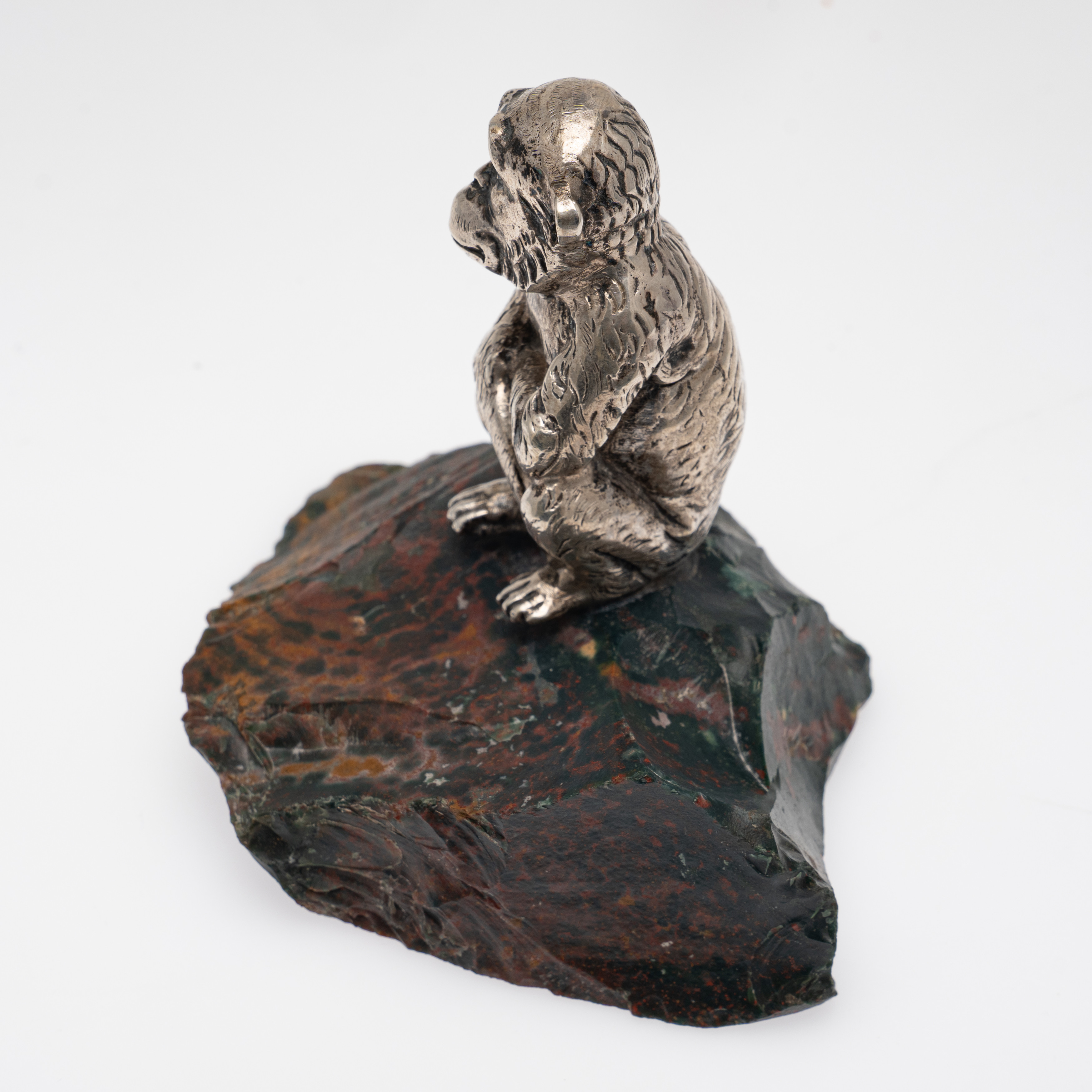 3709470. Art Déco Figur / Skulptur, sitzender Affe, versilbert, Stein.