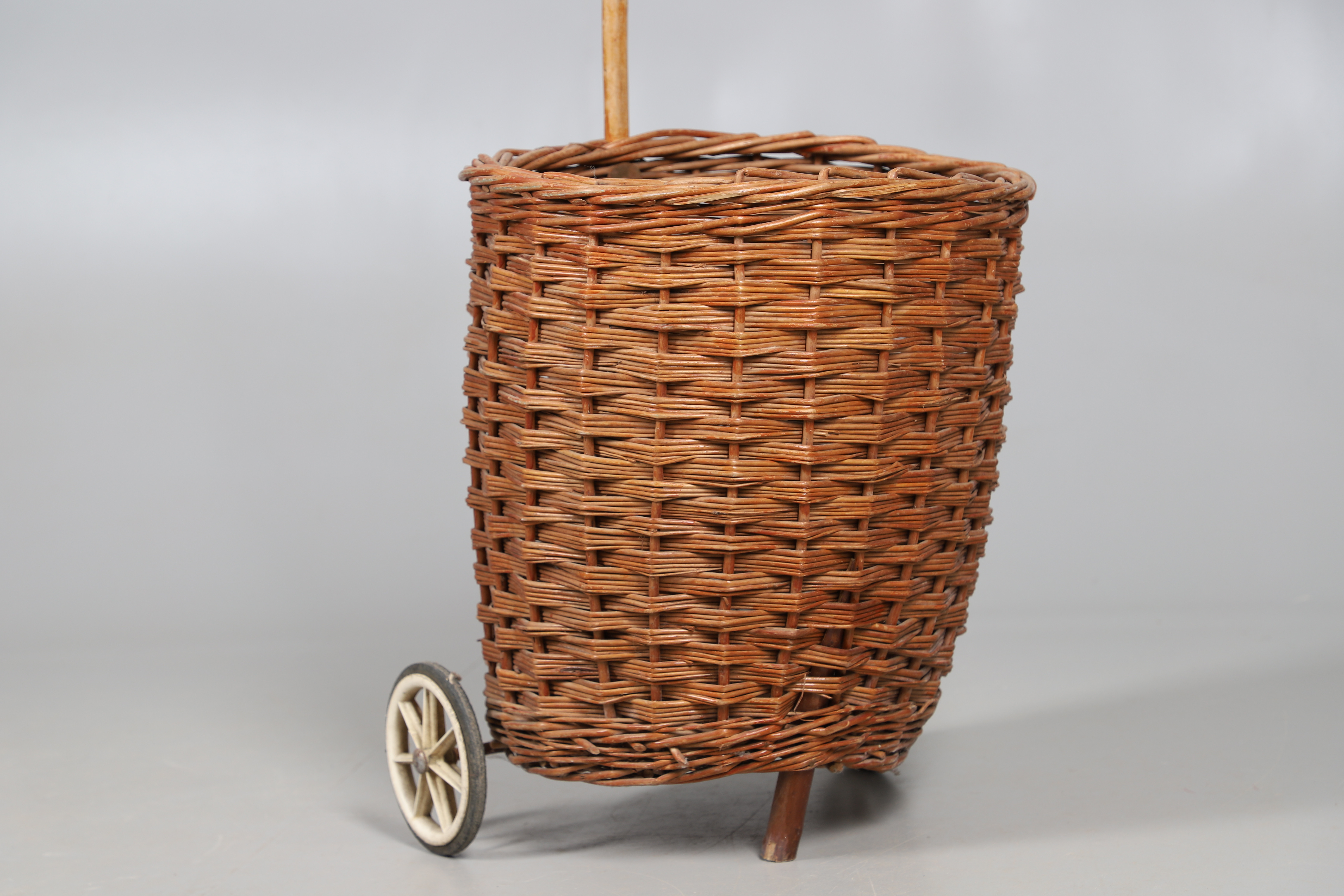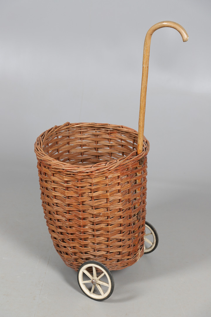 3710242. EIN HANDGEFERTIGTER WEIDENKORB MIT ROLLEN.