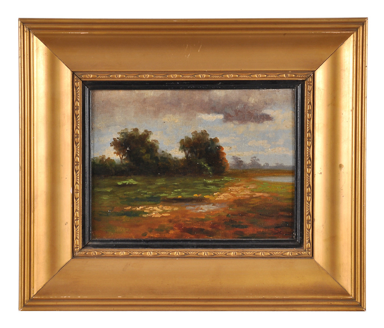 371112. MÜNCHENER SCHULE. Moorlandschaft bei Gewitterhimmel.