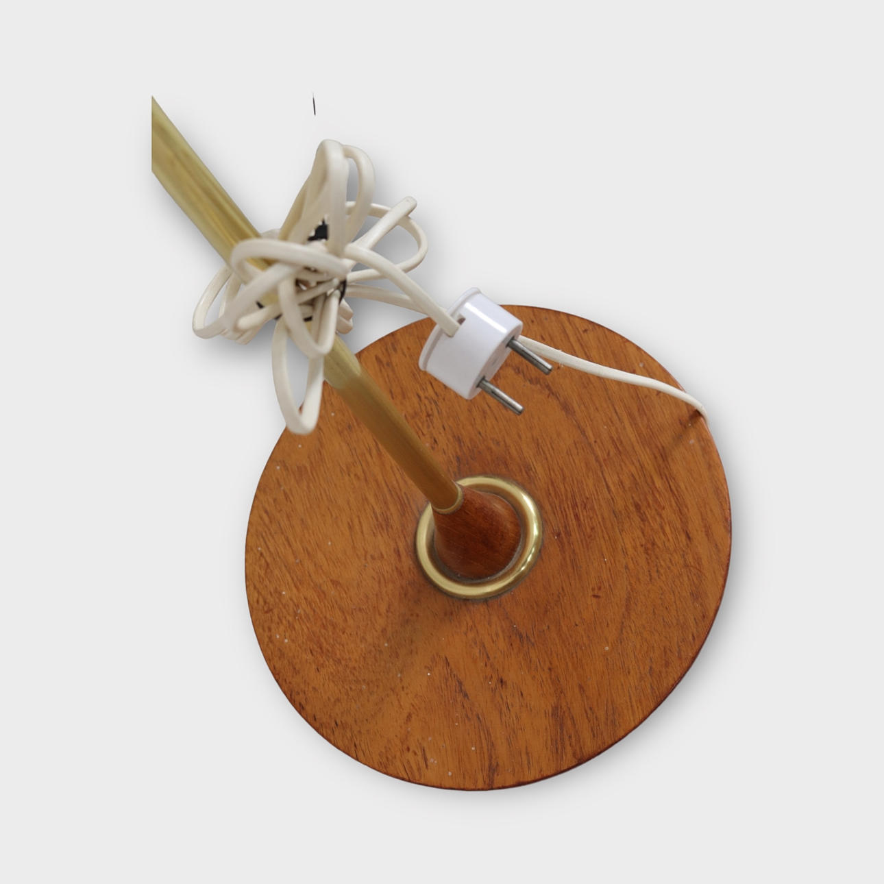 3713844. Stehlampe aus Teakholz, Messing, 20. Jahrhundert.