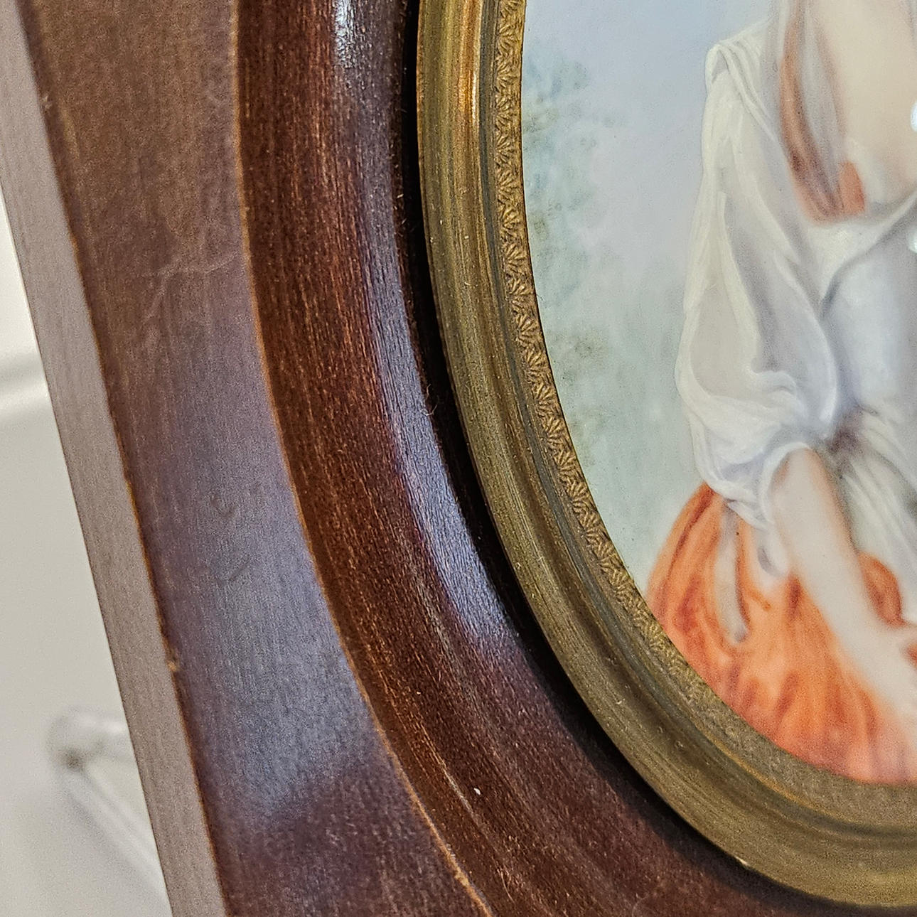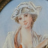 MINIATUR AUF PLATTE GEMALT, ALTE DAME MIT PFERD.
