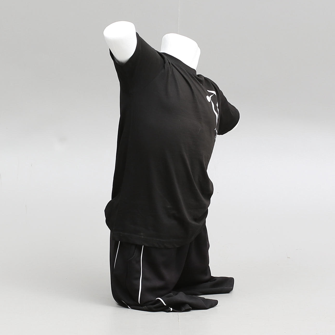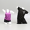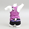 Schaufensterpuppen aus Styropor. Maximale Höhe ca. 85 cm. Lila Leinen, Gr M, kurze Hose, Gr M, T-Shirt, Gr S, Hose, Größe M.