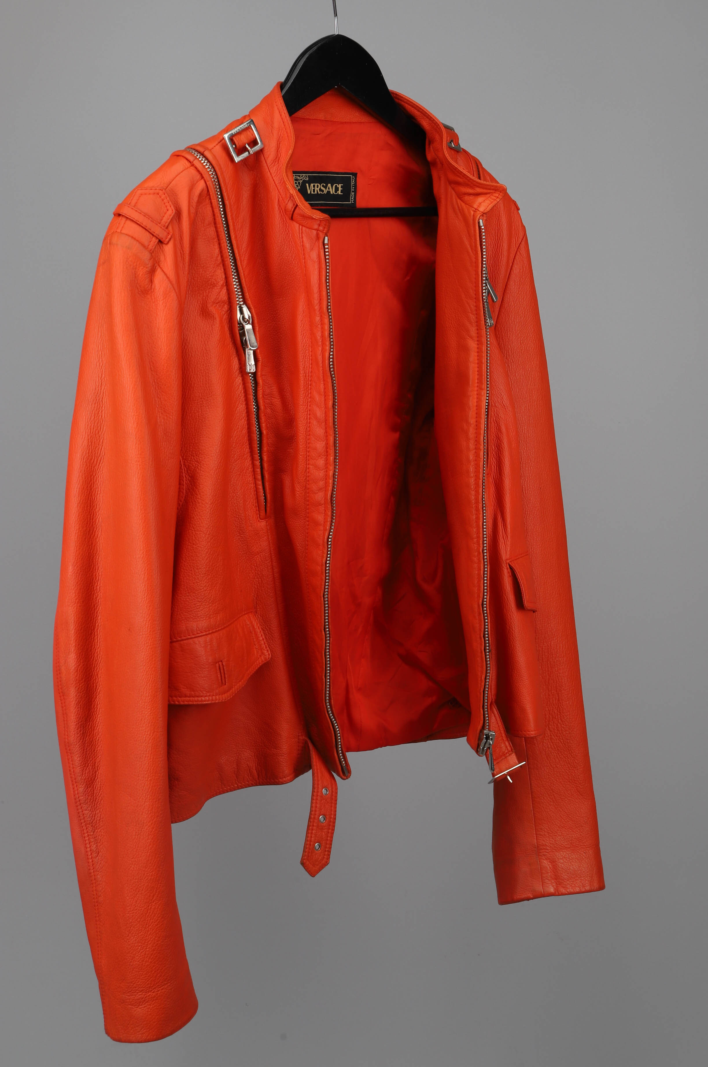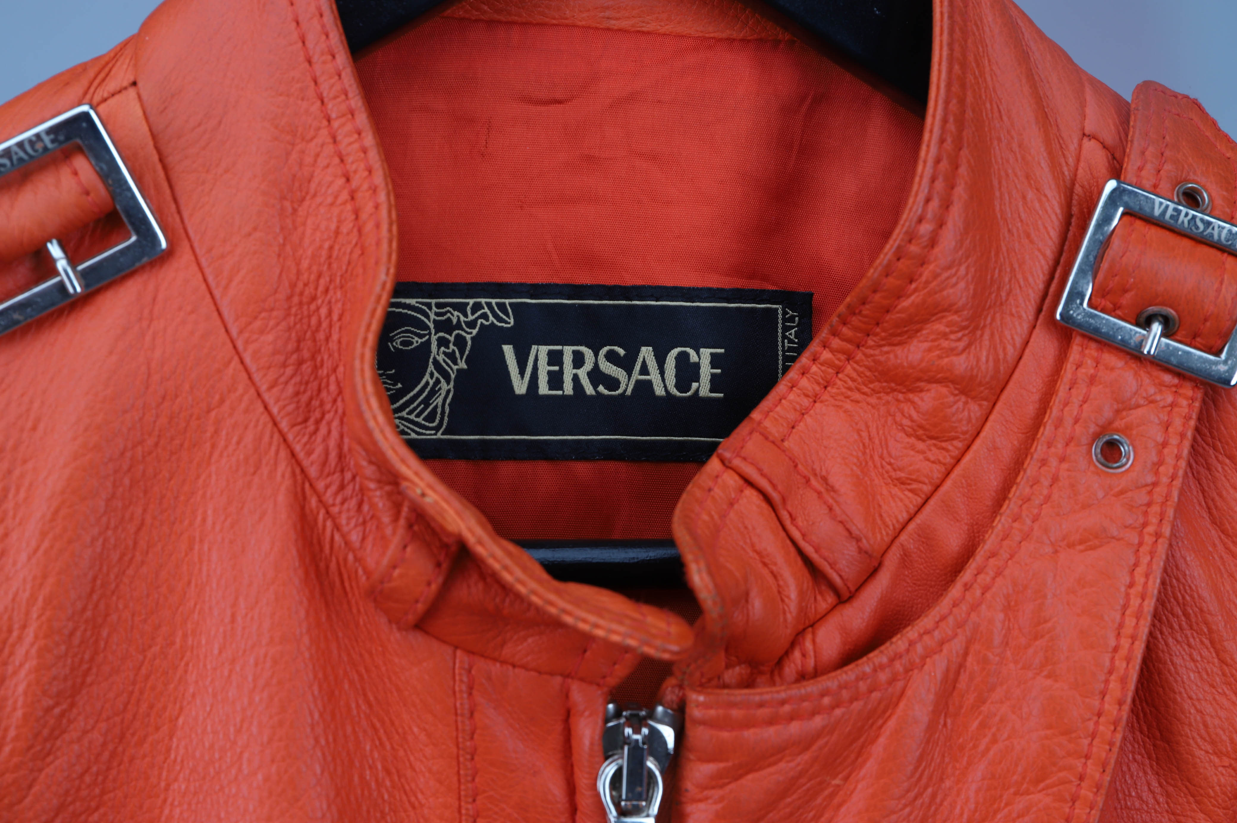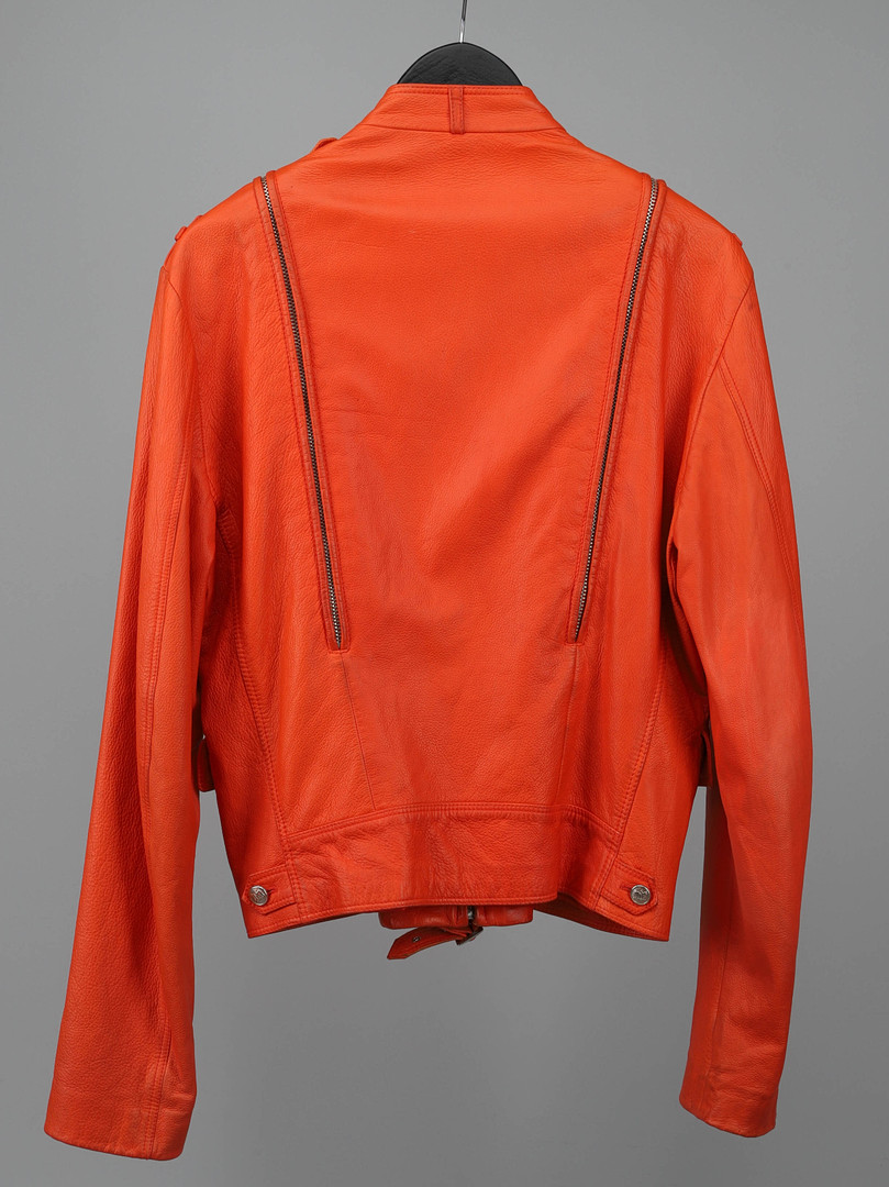 3722012. VERSACE, Jacke, orangefarbenes Lammfell, Größe S/M.