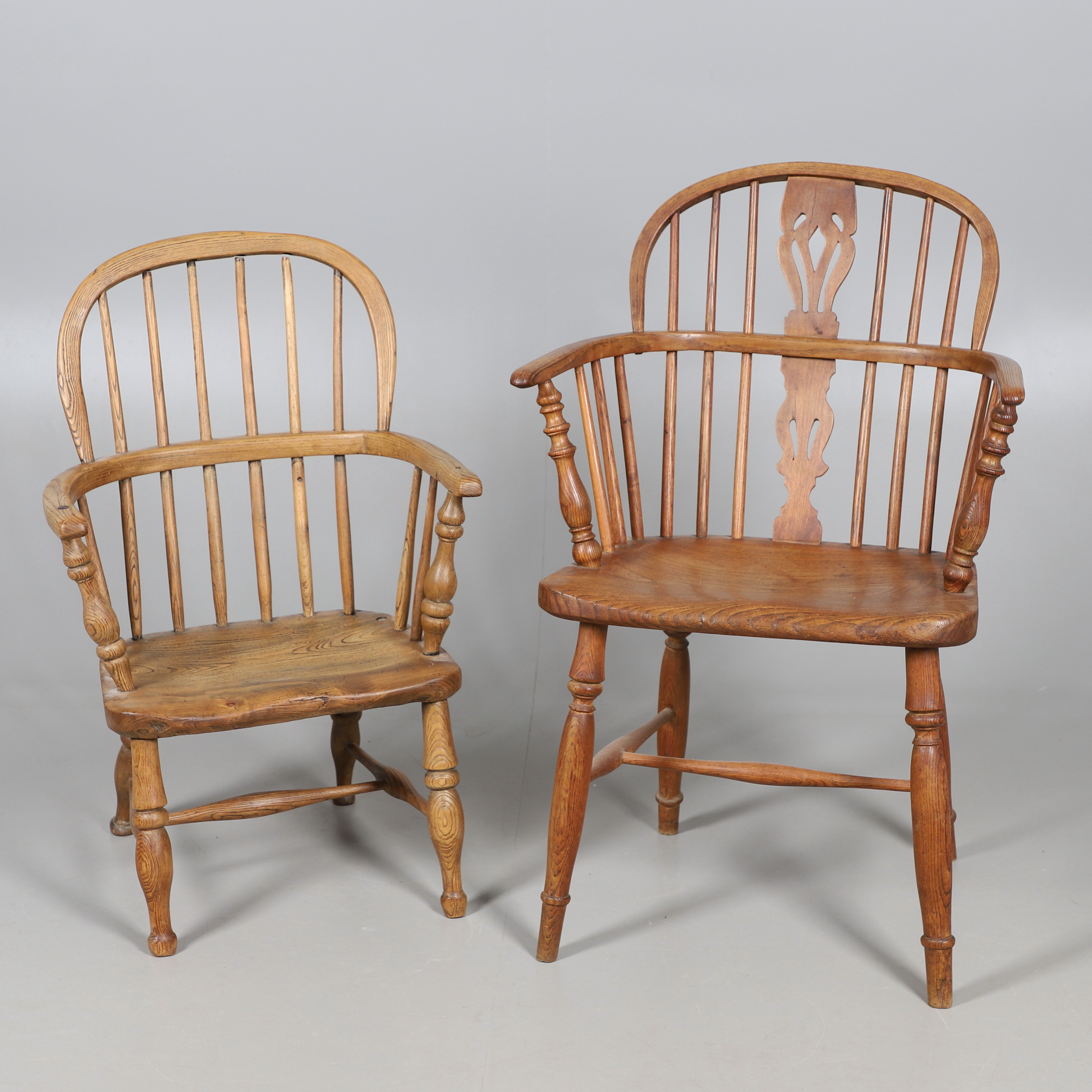 3725783. ZWEI WINDSOR-STÜHLE AUS EICHE UND ULME.