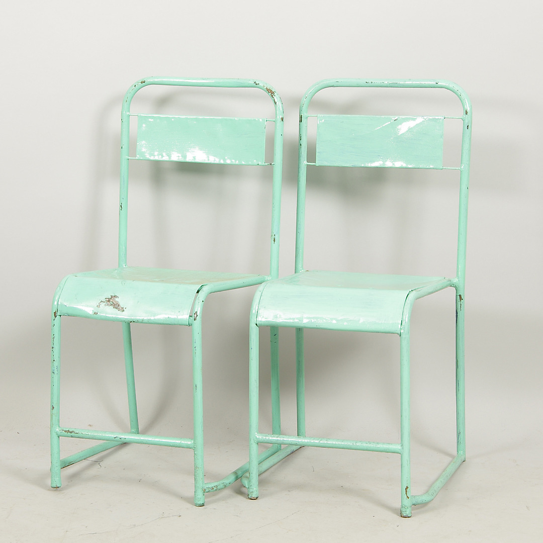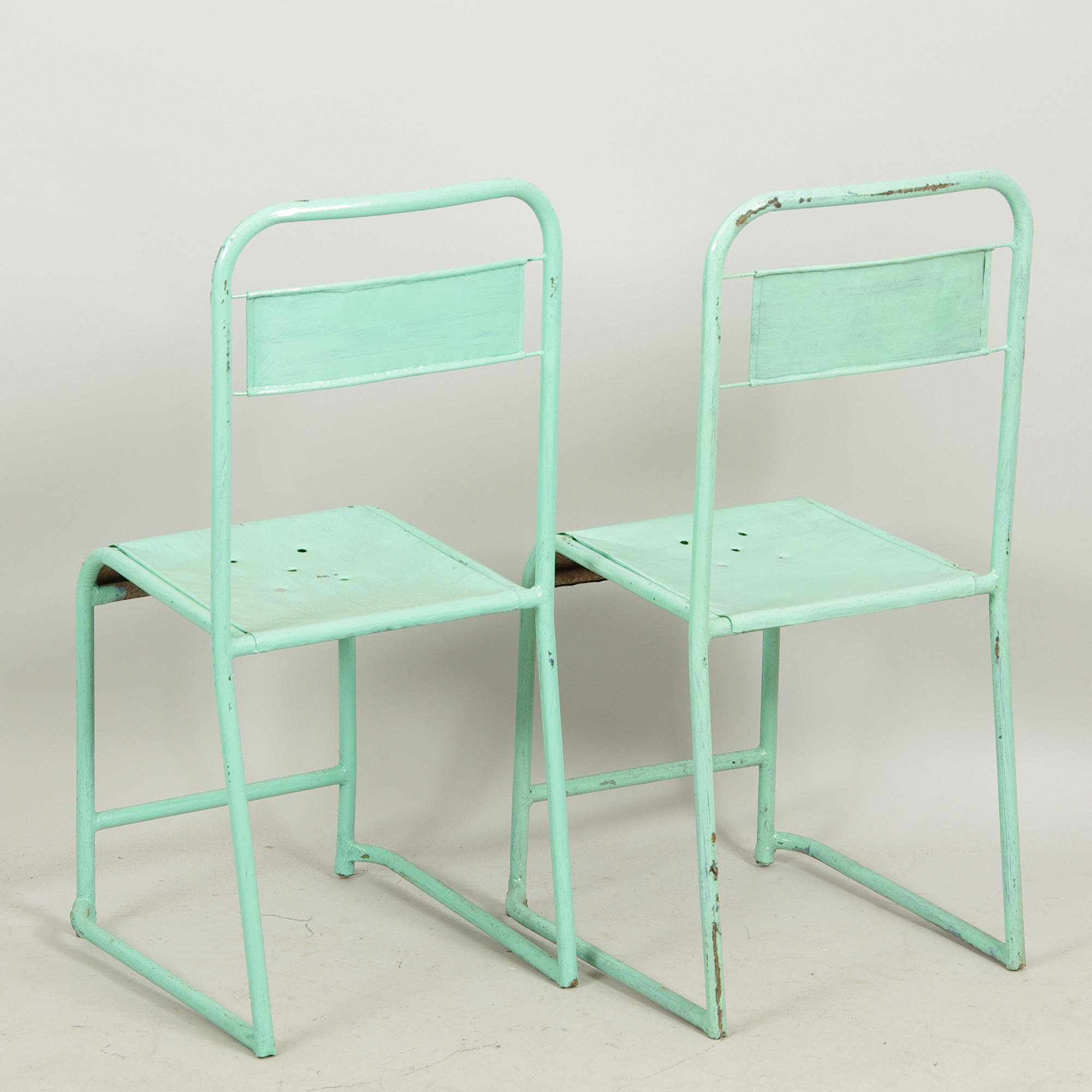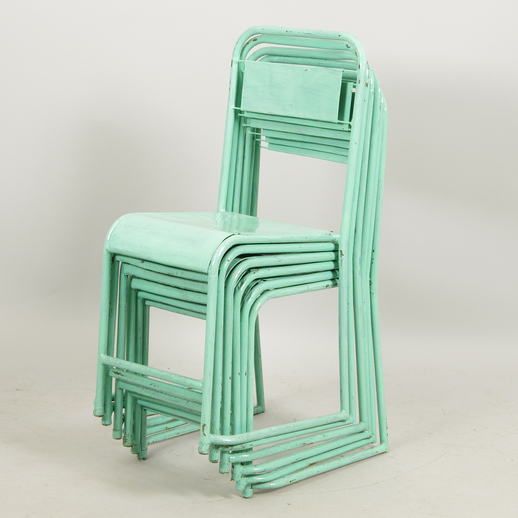 372831. STÜHLE, 6 Stück, lackiertes Blech, Industriedesign.