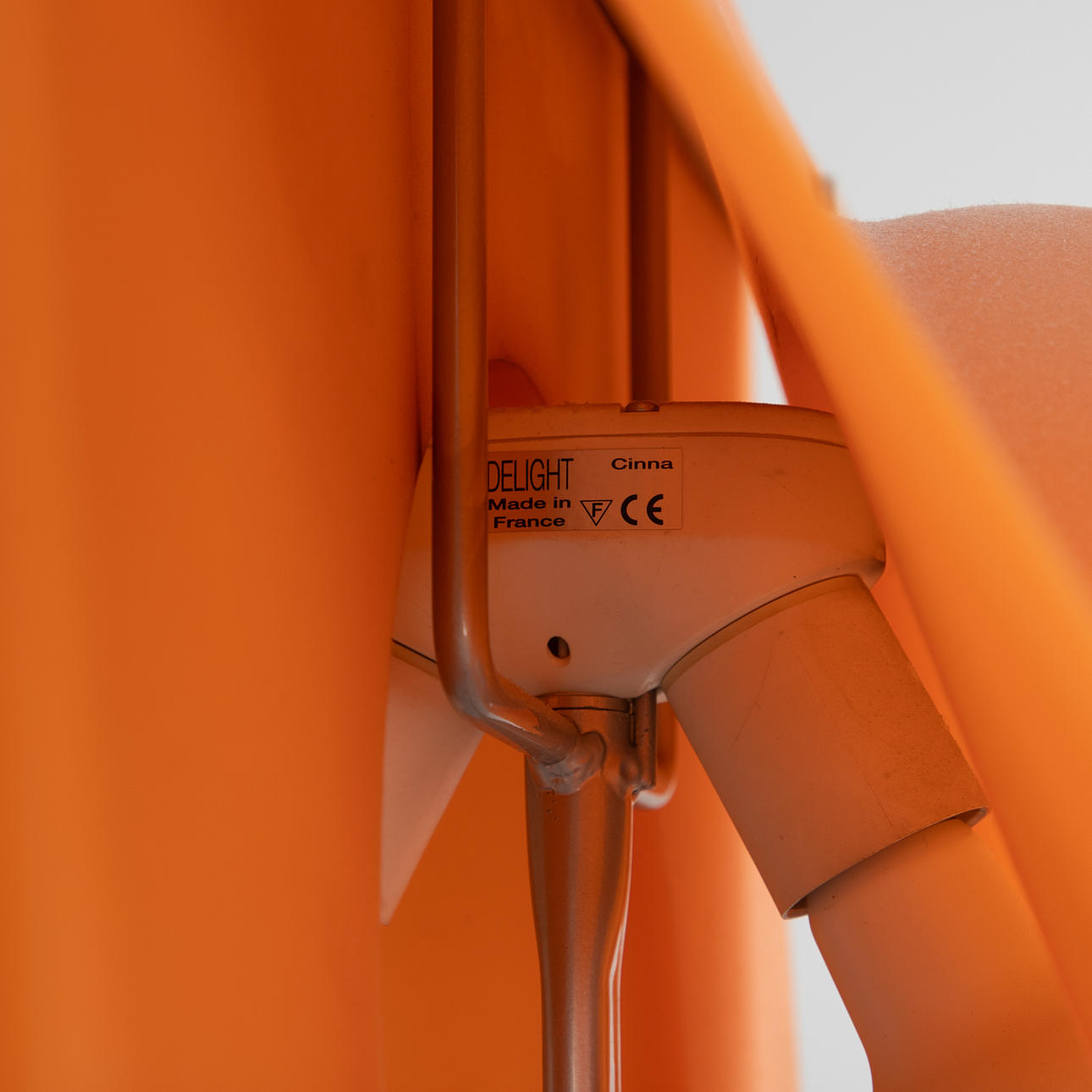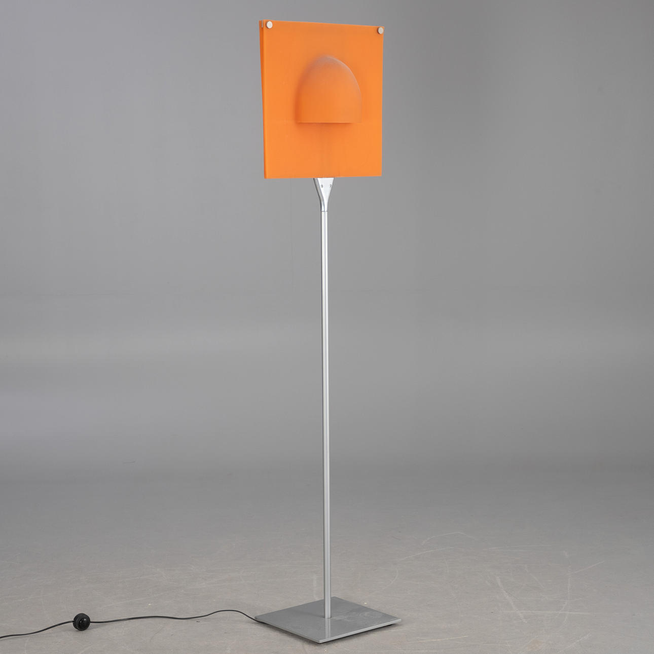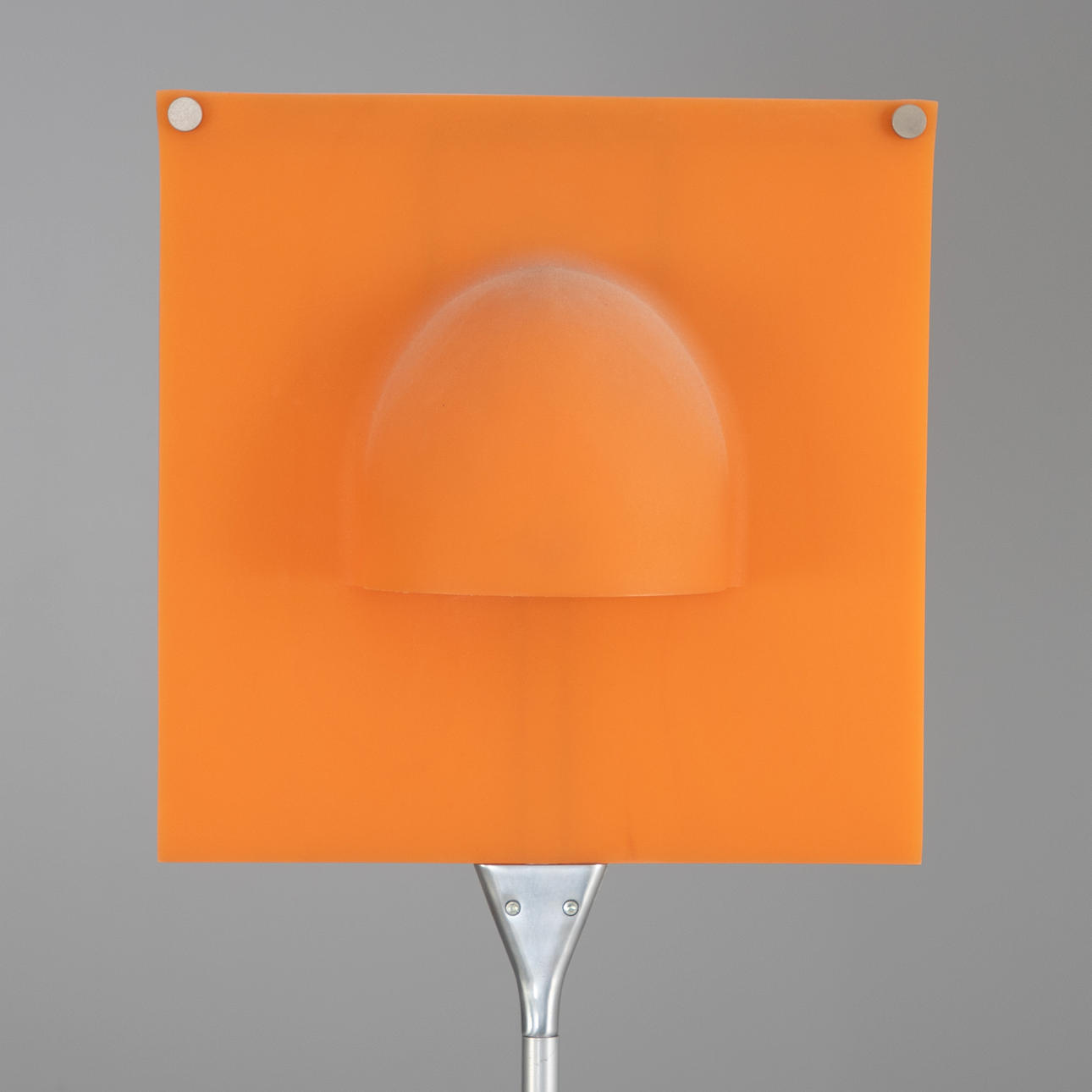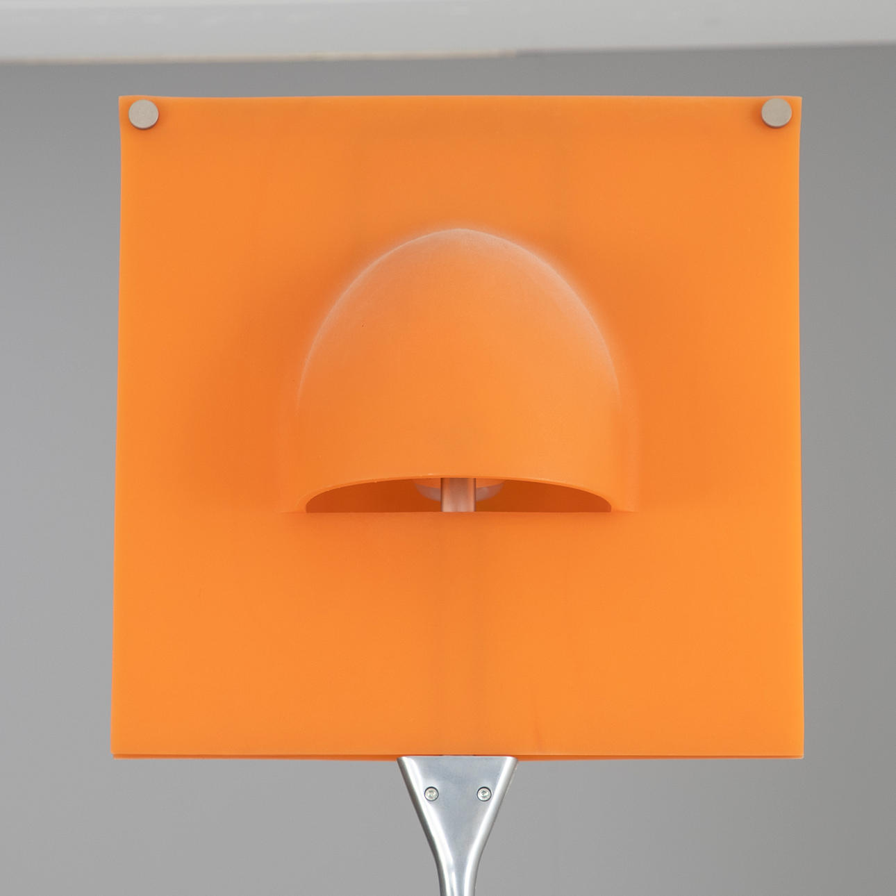 Stahl, Lampenschirm aus weichem, orangenem Kunststoff (Polymer). 2-flammig. Mit Aufkleber bezeichnet.
