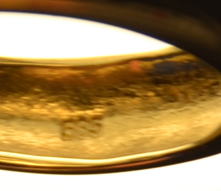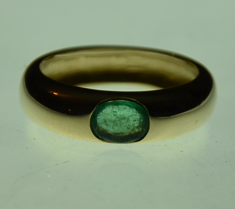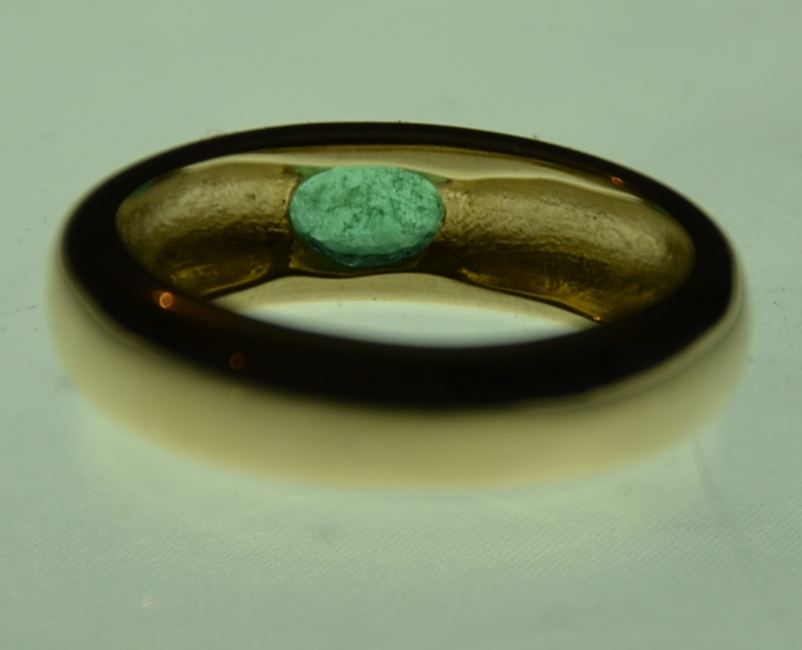 373032. RING 585 GG MIT GRÜNEM FARBSTEIN.