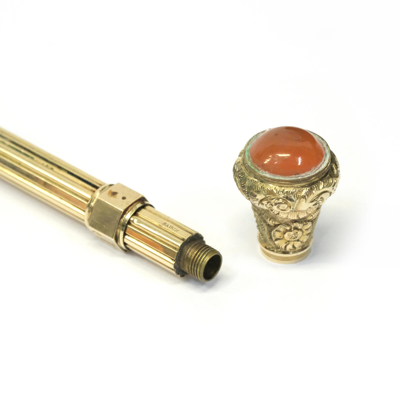 Mit Details aus 8-karätigem Gold, Knospe mit Achat, gestempelt „RAUCH“, Mitte 19. Jahrhundert, Länge ca. 13 cm inklusive Spitze.