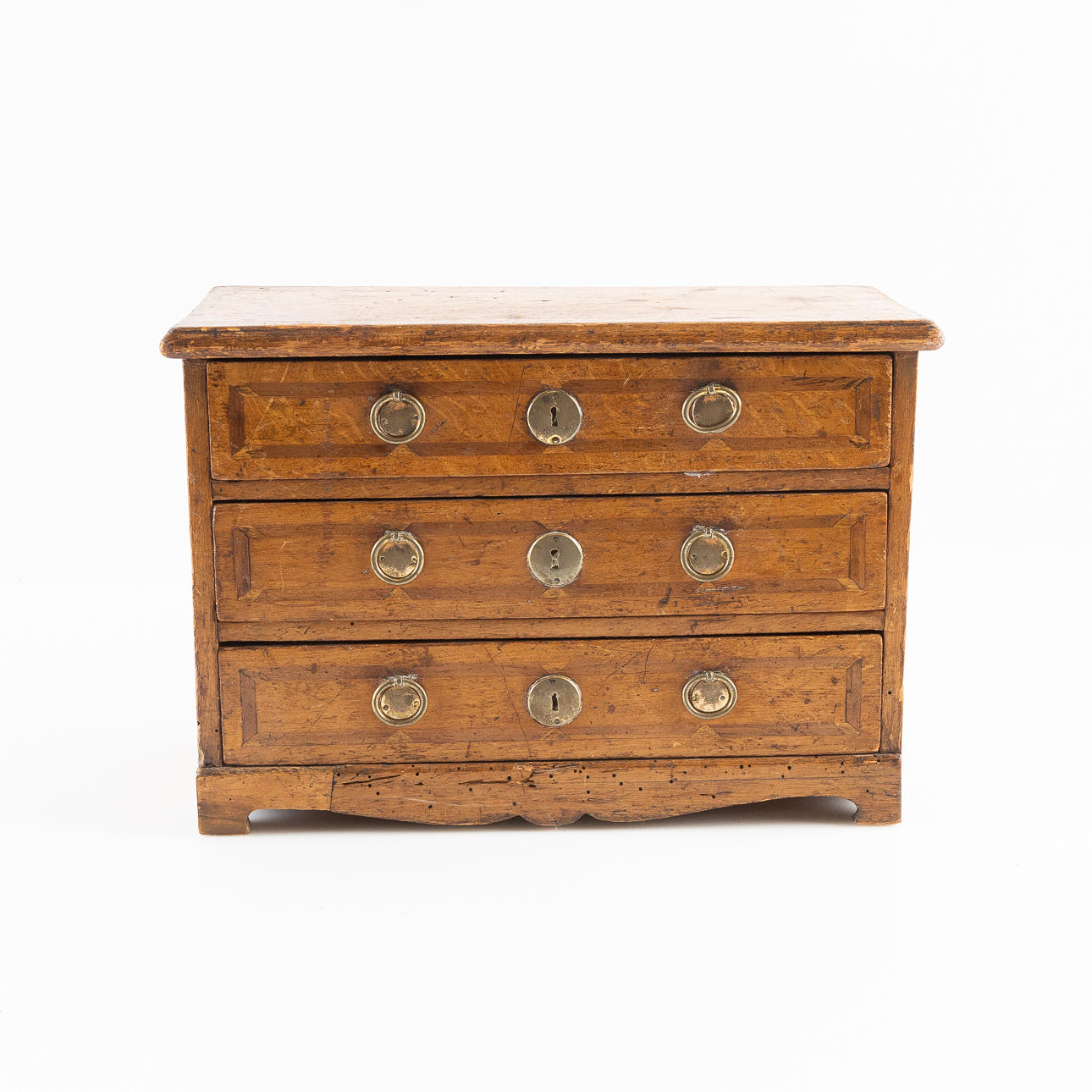 3730620. Miniaturkommode, 3 Schubladen, Eiche, 19. Jahrhundert.