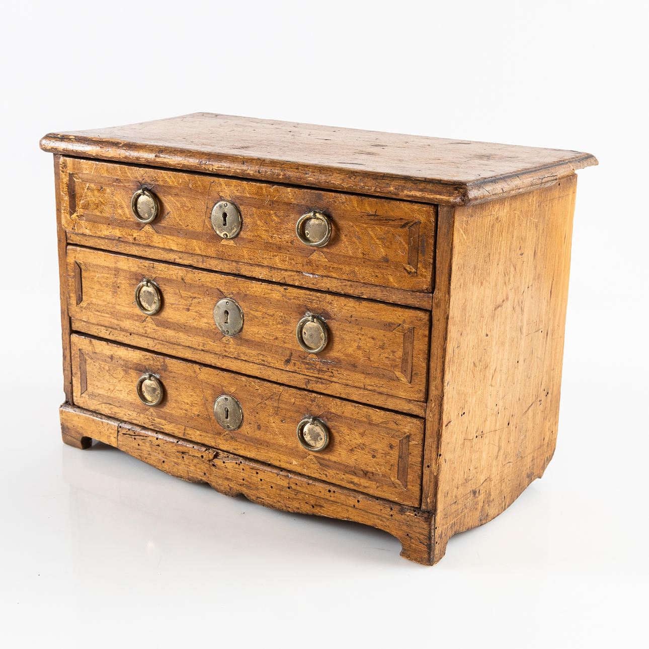 Miniaturkommode, 3 Schubladen, Eiche, 19. Jahrhundert.