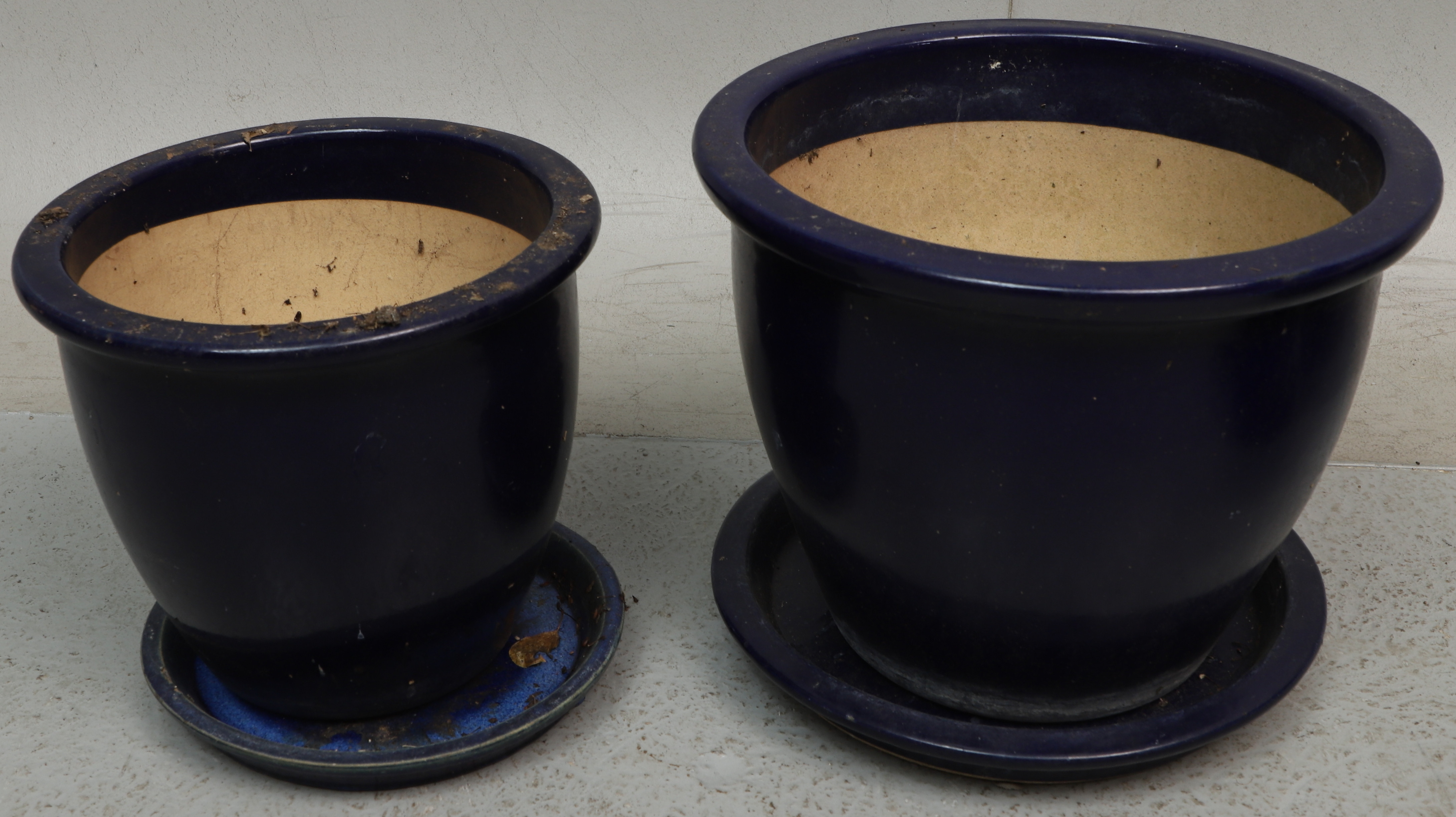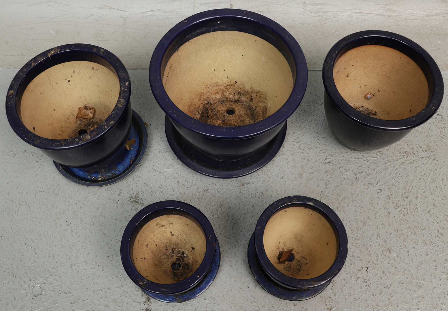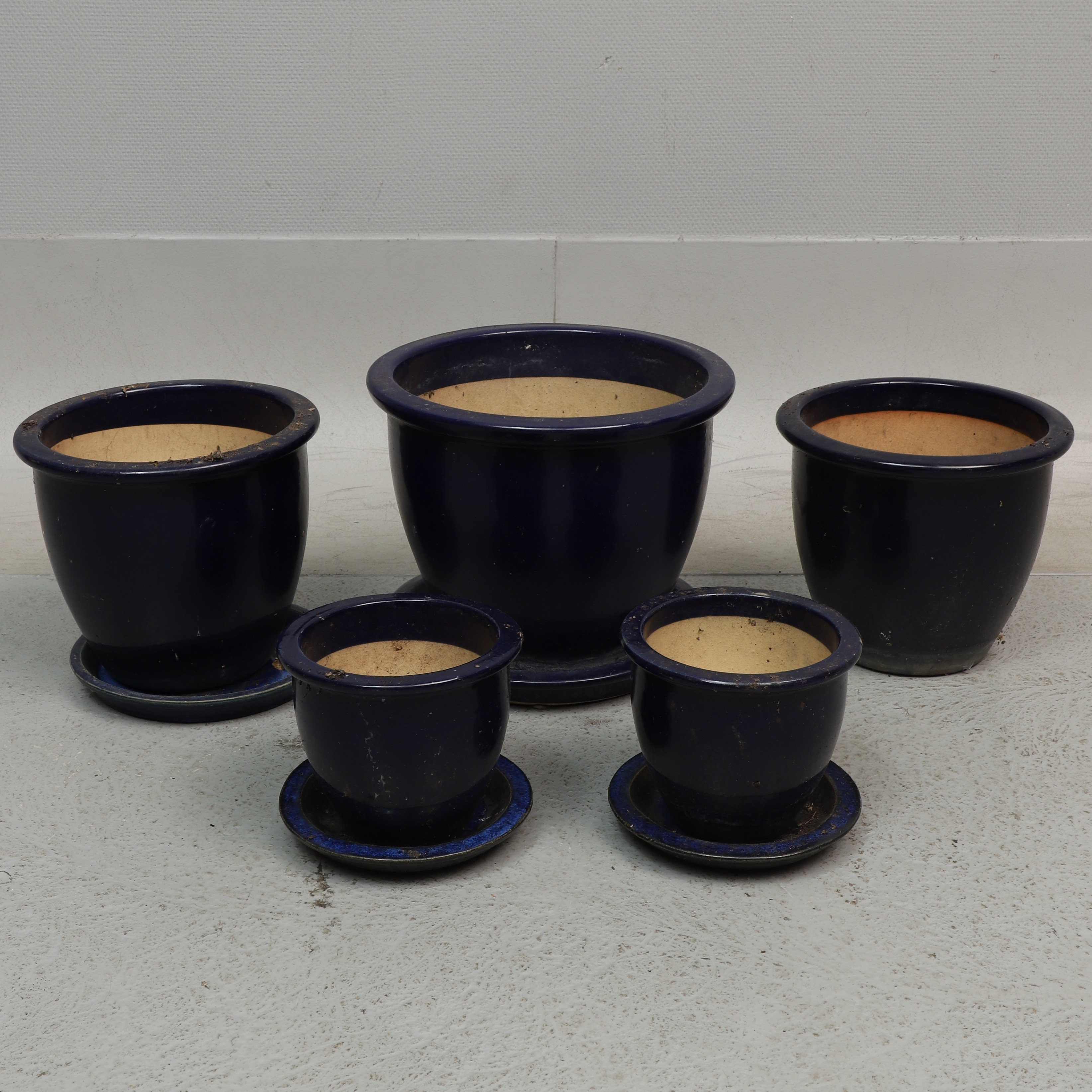3731048. GARTENTÖPFE, 5 Stück blau glasiert, modern.