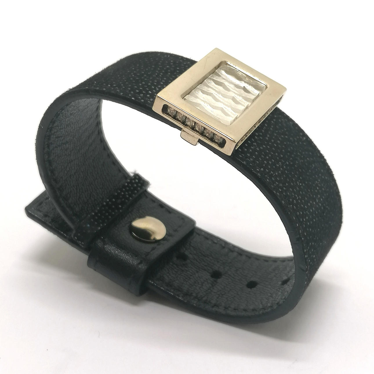 Modisches Lederarmband mit Kristallen von Lalique, 20 cm.