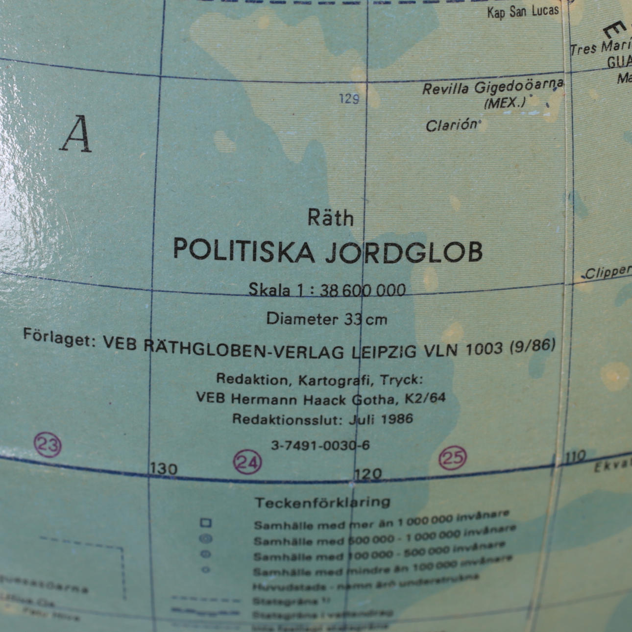 3734648. Ein Globus mit Beleuchtung, Räths politik, 1986.