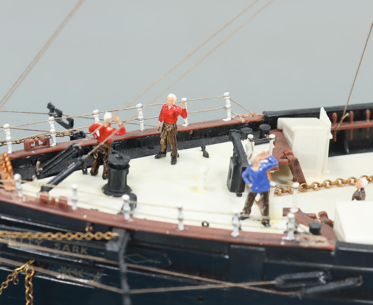 3738139. SCHIFFSMODELL Cutty Sark, in Glasvitrine.