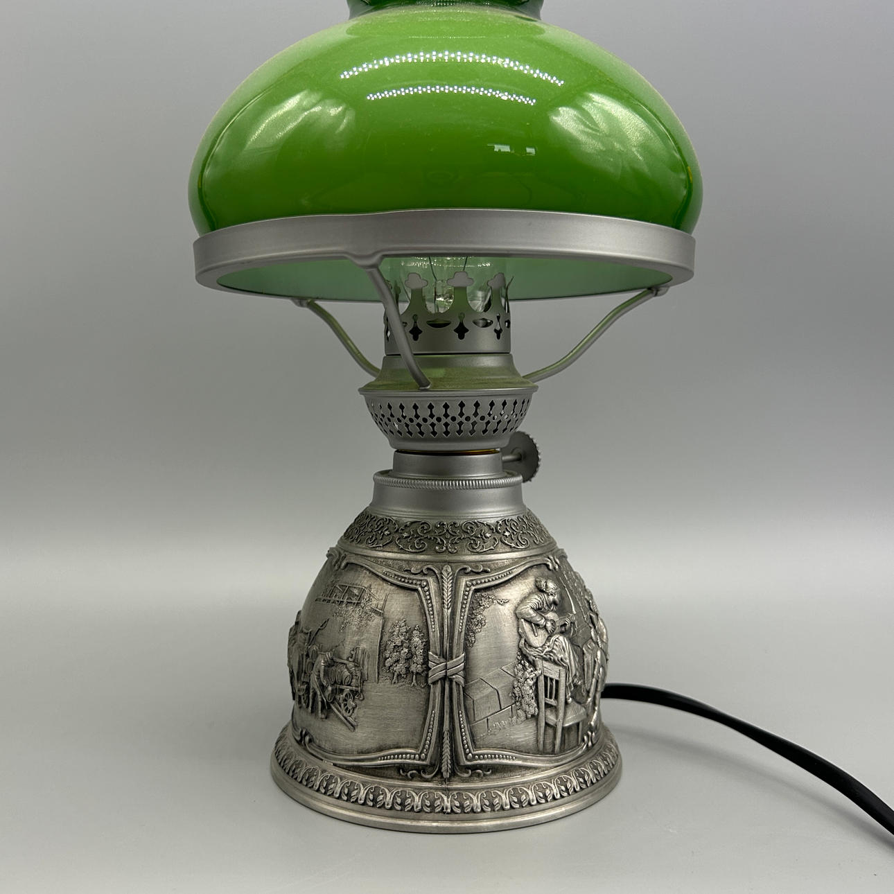 Die Petroleumlampe mit originalem Kosmos-Brenner-Design wurde elektrisch umgerüstet und bietet nun moderne Beleuchtung im klassischen Look.