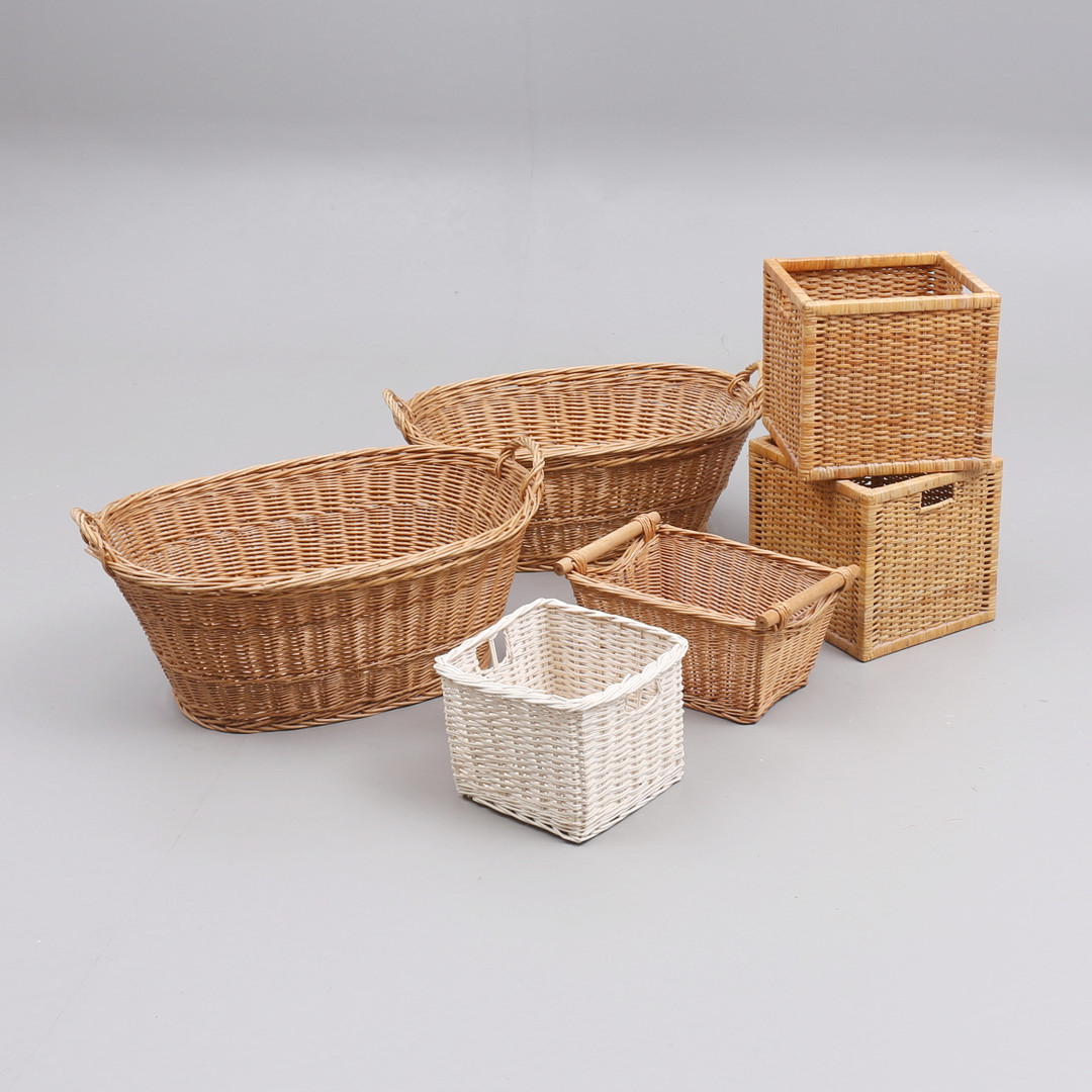 3740676. KÖRBE, 6 Stück, blaue Wäschekörbe.