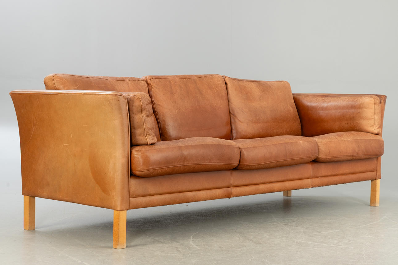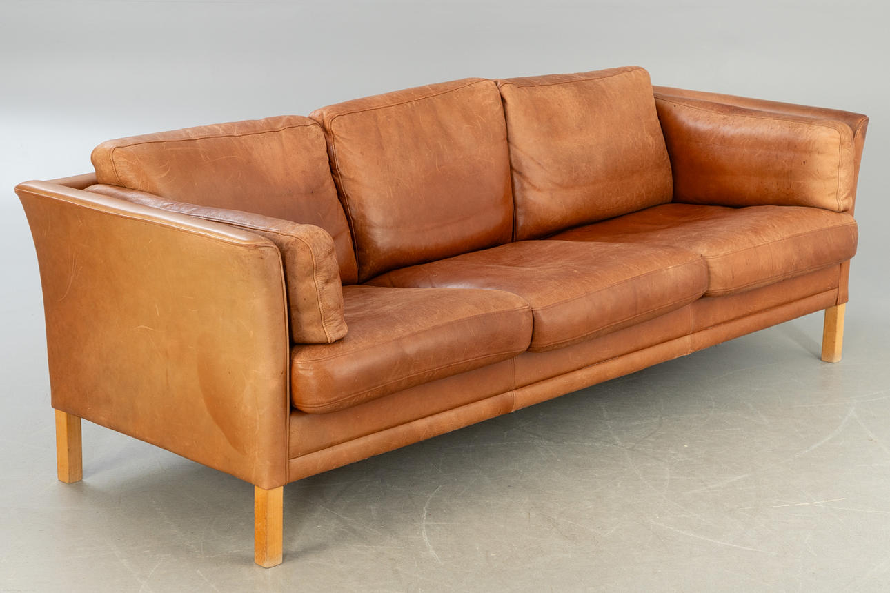 3753006. 3-Sitzer Leder Sofa, skandinavisches Design.