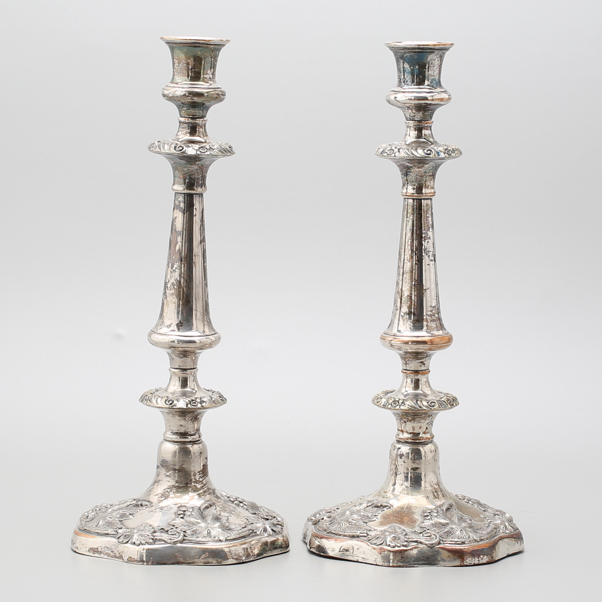 375558. KERZENSTÄNDER, 2 Stück, Neusilber.