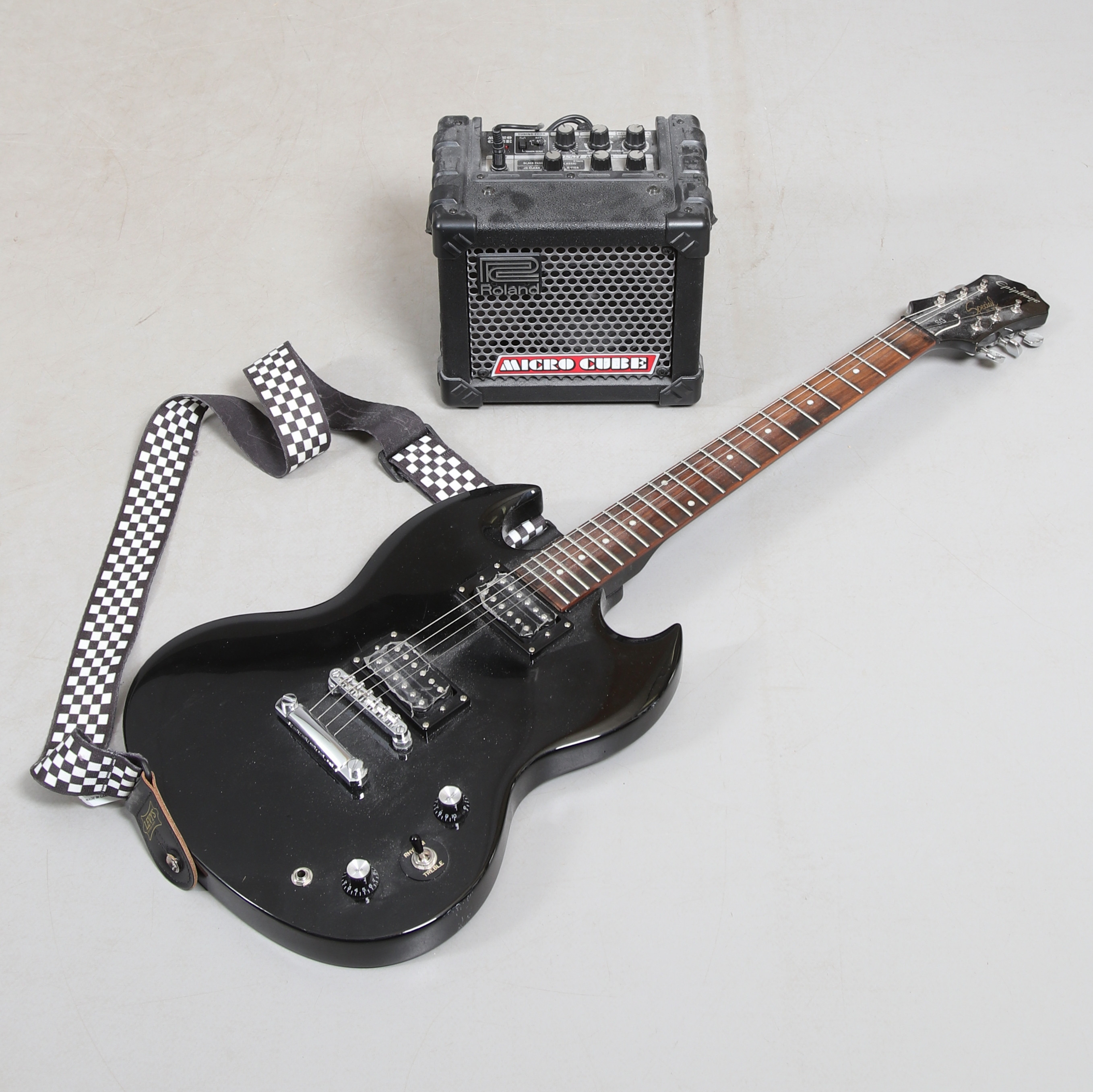 3756226. E-GITARRE, Epiphone Special SG Model, VERSTÄRKER, Micro Cube, Roland.