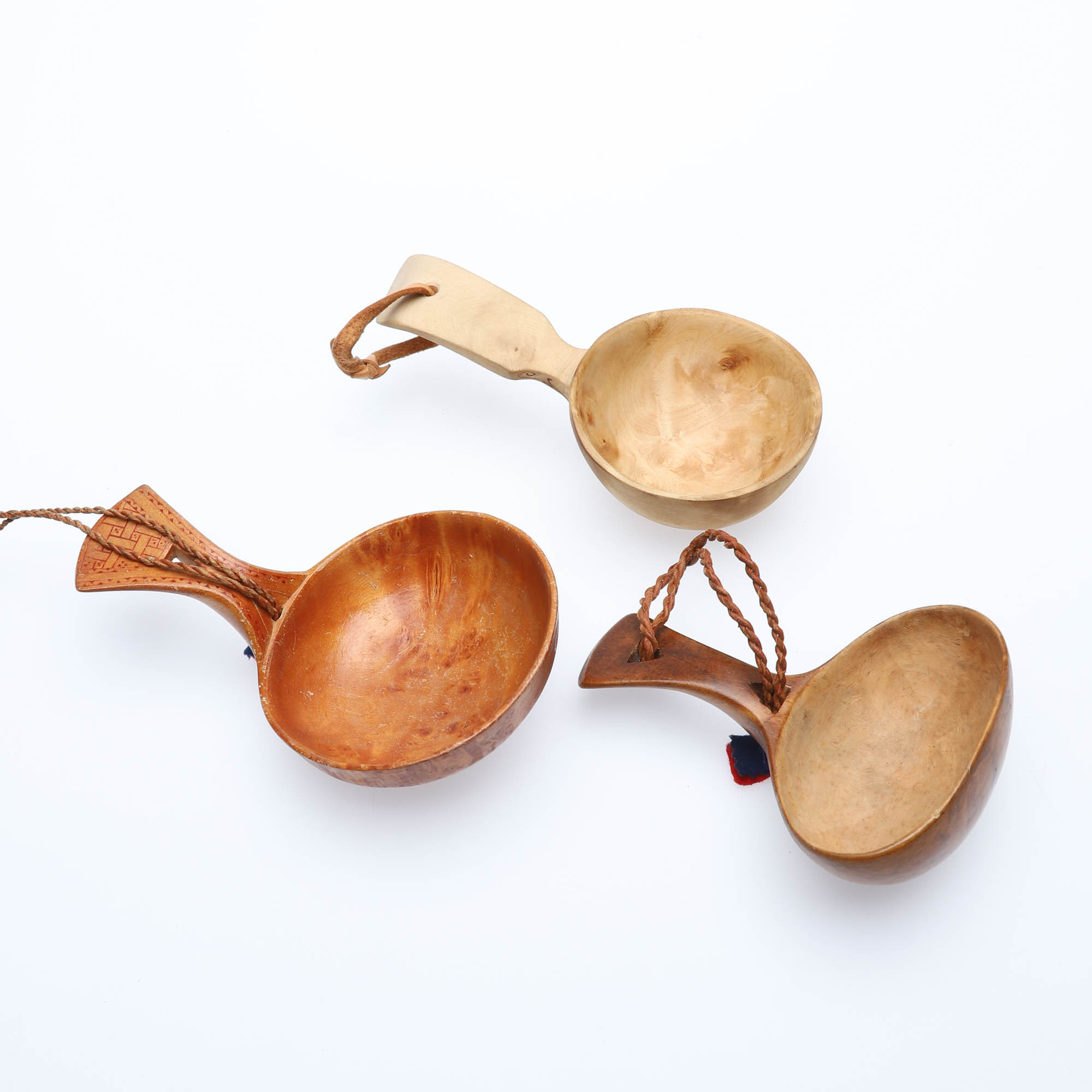 3758701. KÅSOR, Holz, 3 Stück, eins signiert.