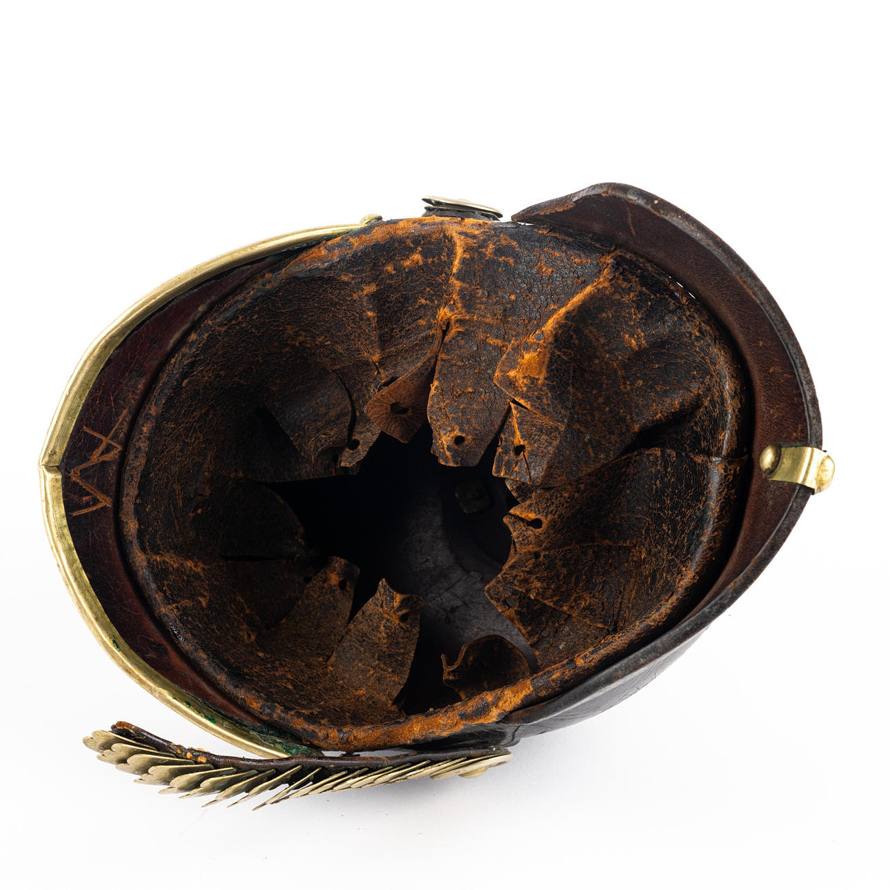 Gebrauchsspuren, das Leder hat Risse, leichte Oberflächenschäden an den unteren kurzen Seiten, starke Abnutzung auf der Innenseite, ein Kinnriemen ohne Ende. Bildschirmrand leicht locker. An der Befestigung an der Kronenspitze reparieren. Weniger Druck auf die Armaturen.