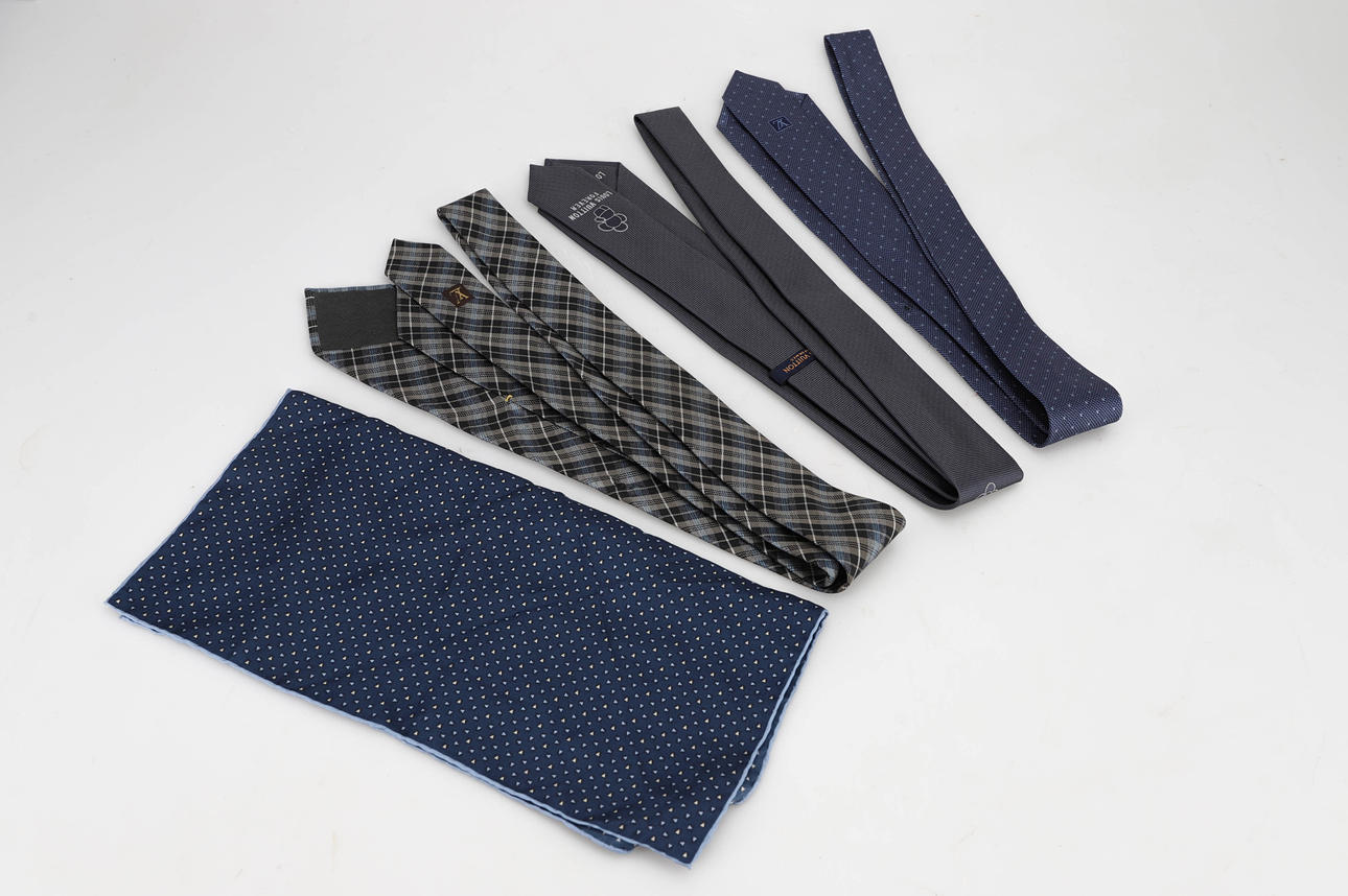 3759294. LOUIS VUITTON Krawatten 3 Stück, Seide + Taschentuch, Seide.
