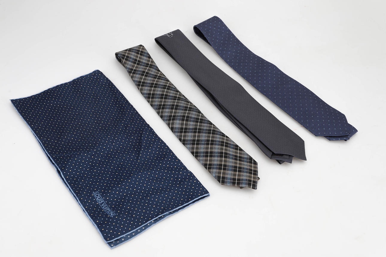 LOUIS VUITTON Krawatten 3 Stück, Seide + Taschentuch, Seide.
