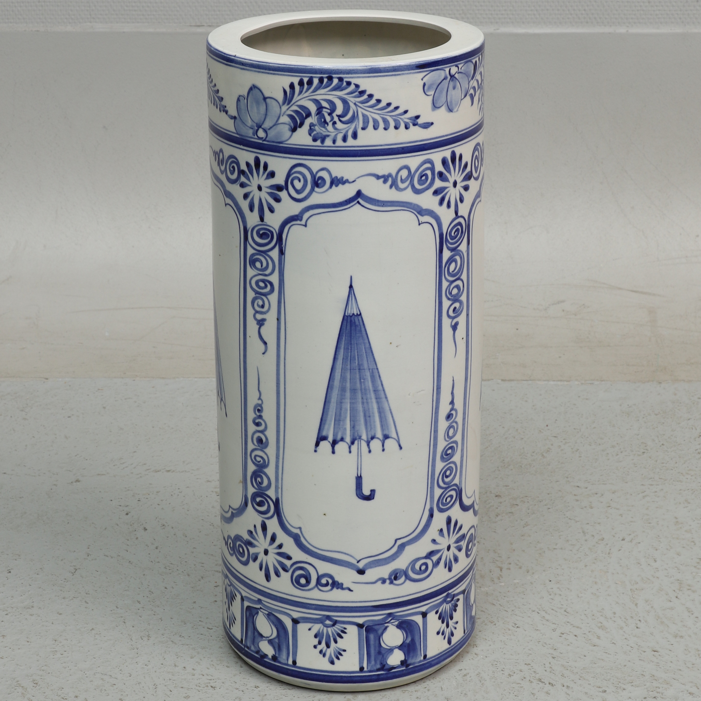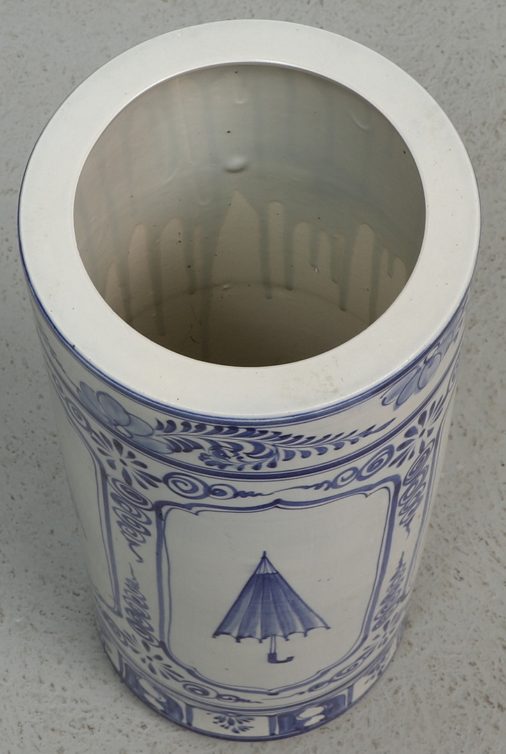 3759918. Schirmständer, Keramik, blau-weiße Dekoration des Regenschirms.