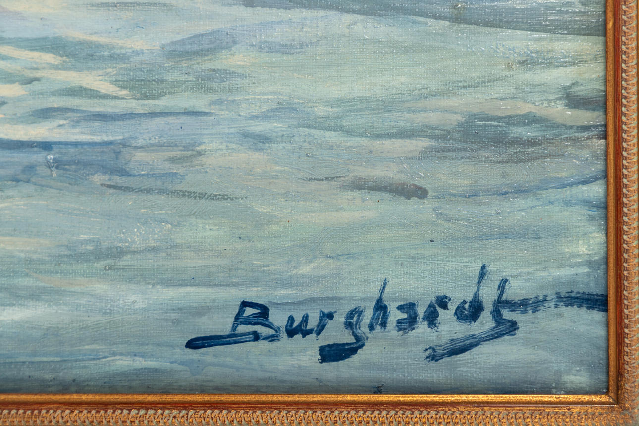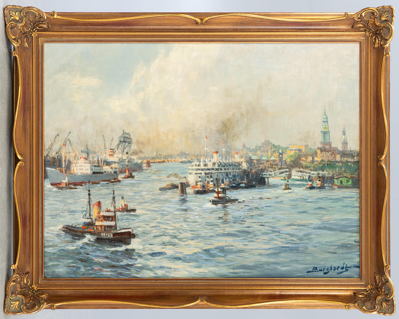 Gustav Burghardt ist als Landschafts-, Stilleben- und Marinemaler bekannt. Besonders beliebt sind seine Darstellungen des Hamburger Hafens.