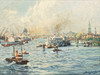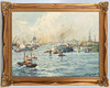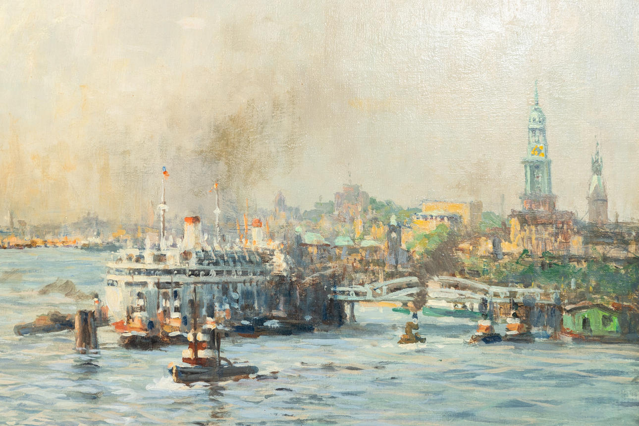 Gustav Burghardt (1890-1970), Hamburger Hafen, Öl auf Leinwand, signiert, ca. 60 x 78 cm, mit Rahmen ca. 74 x 95 cm.